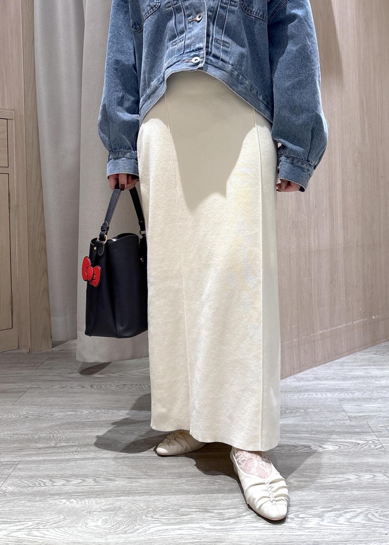 バッグはハローキティとのコラボアイテムでキティちゃんのさり気ないリボンがかわいらしいデザインですよ♫