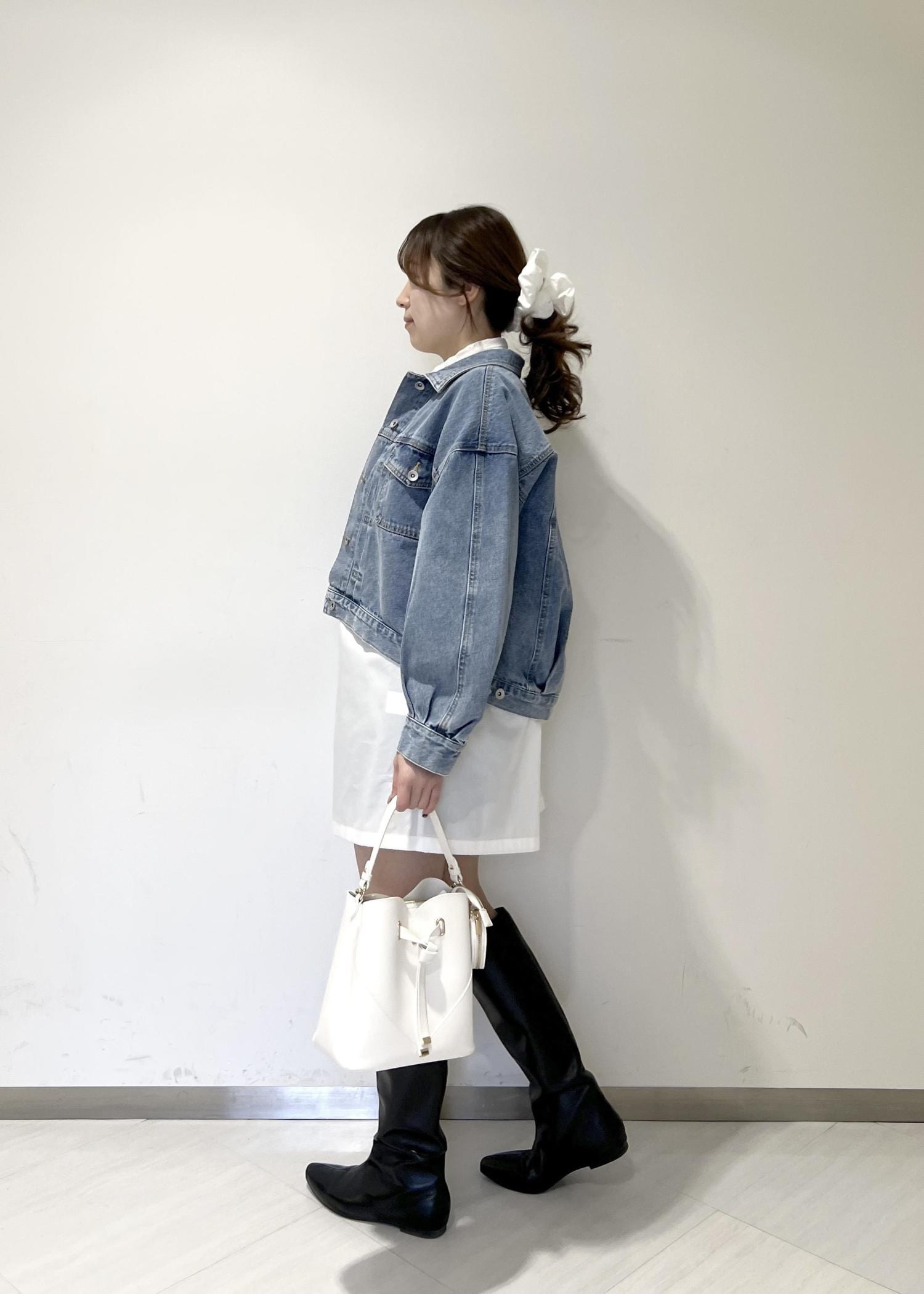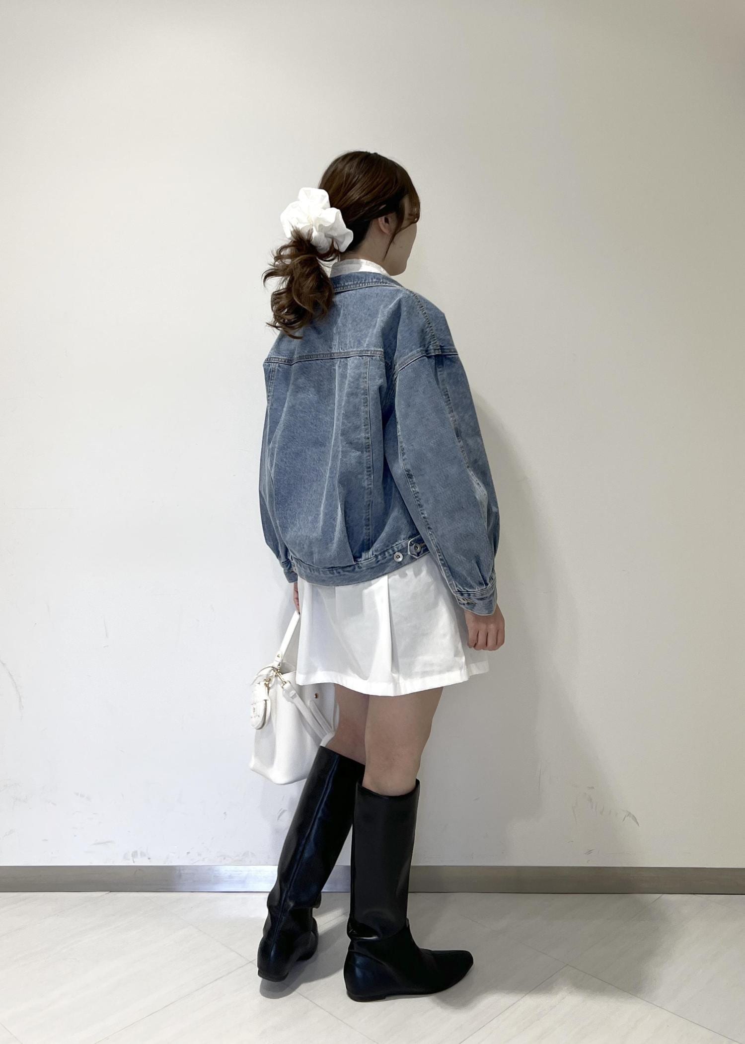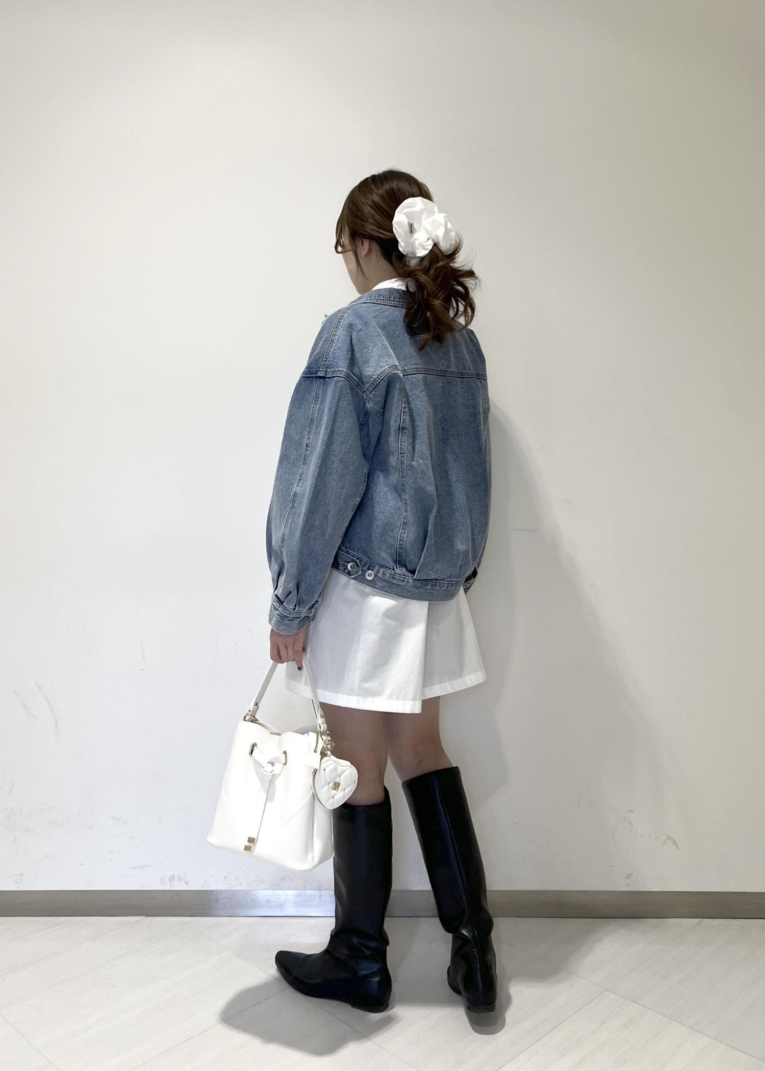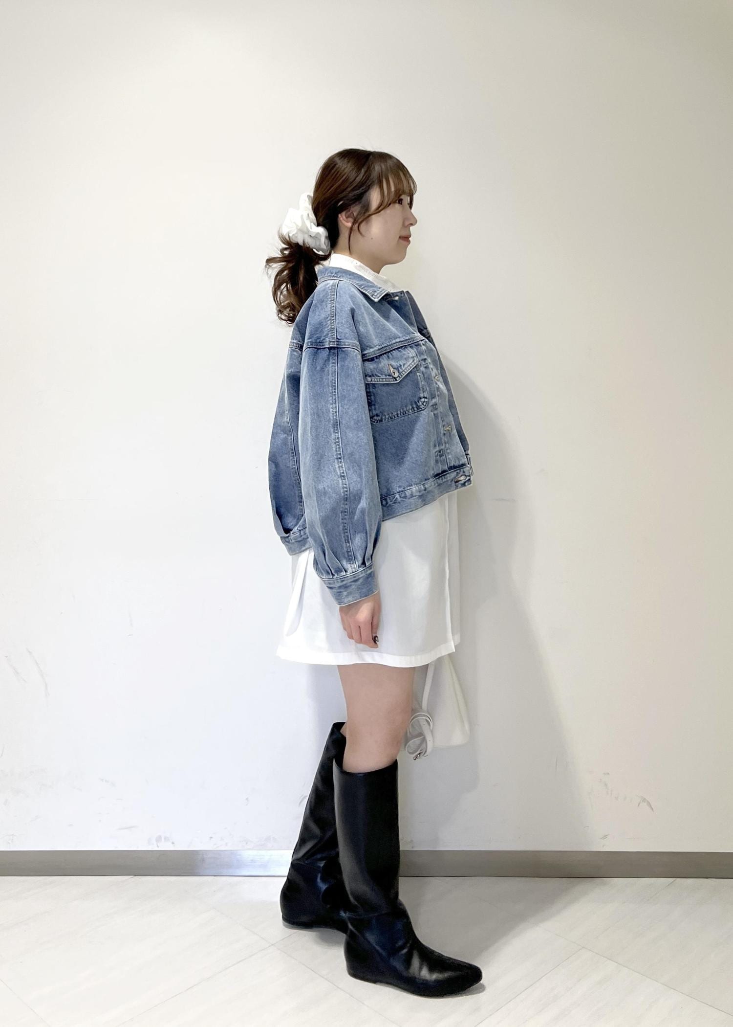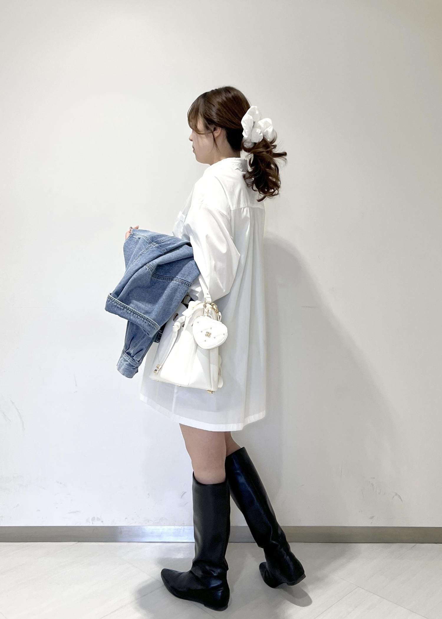 VIS襟レース付きミニ丈シャツワンピホワイト / F¥7,689レビュー身長164cmで着丈は膝上なので、ショーパンを下に履いています!全体的にゆとりのあるサイズ感です◎