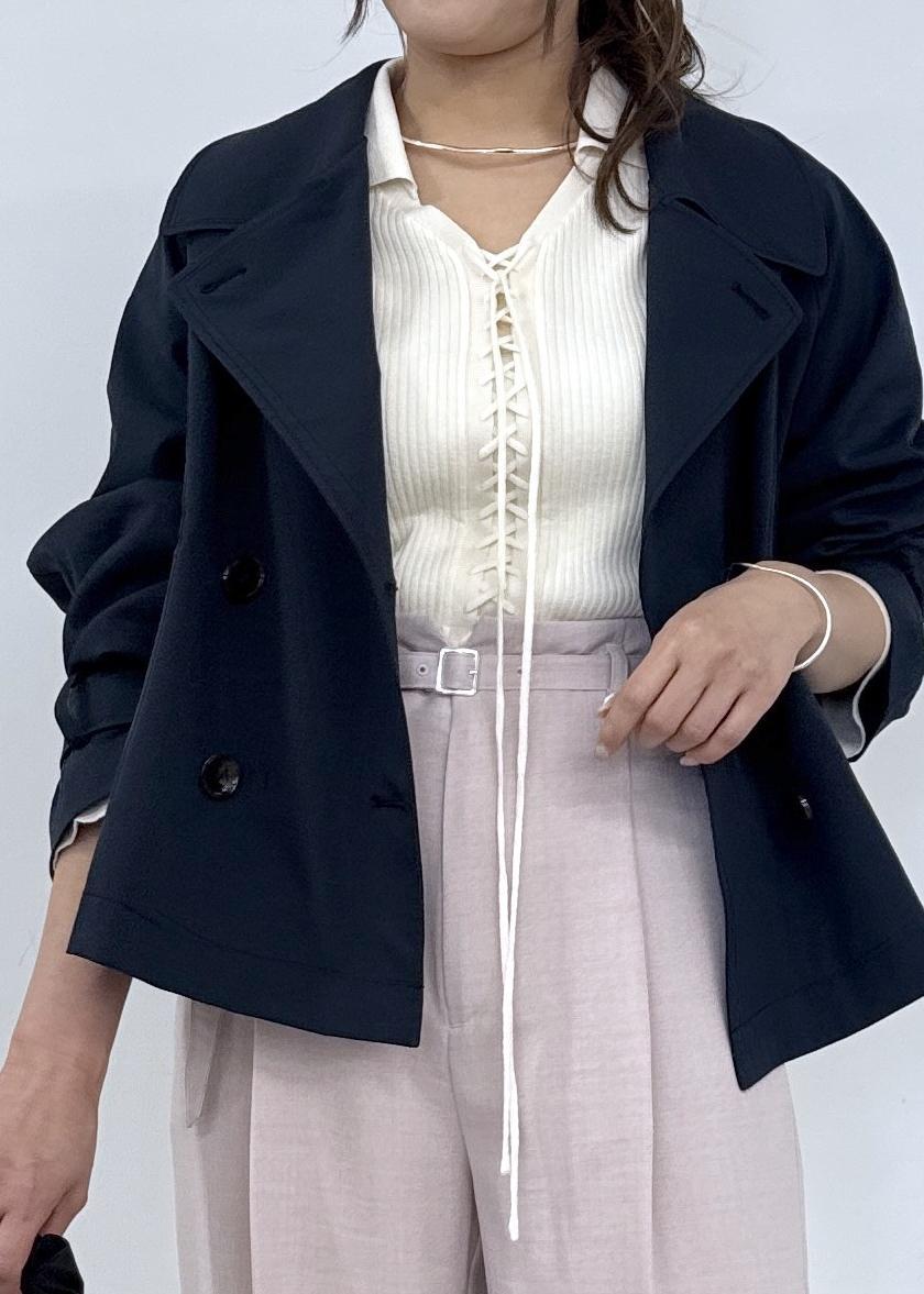 柔らかく軽い素材です。オンオフで着まわしやすいショート丈トレンチコートです◎