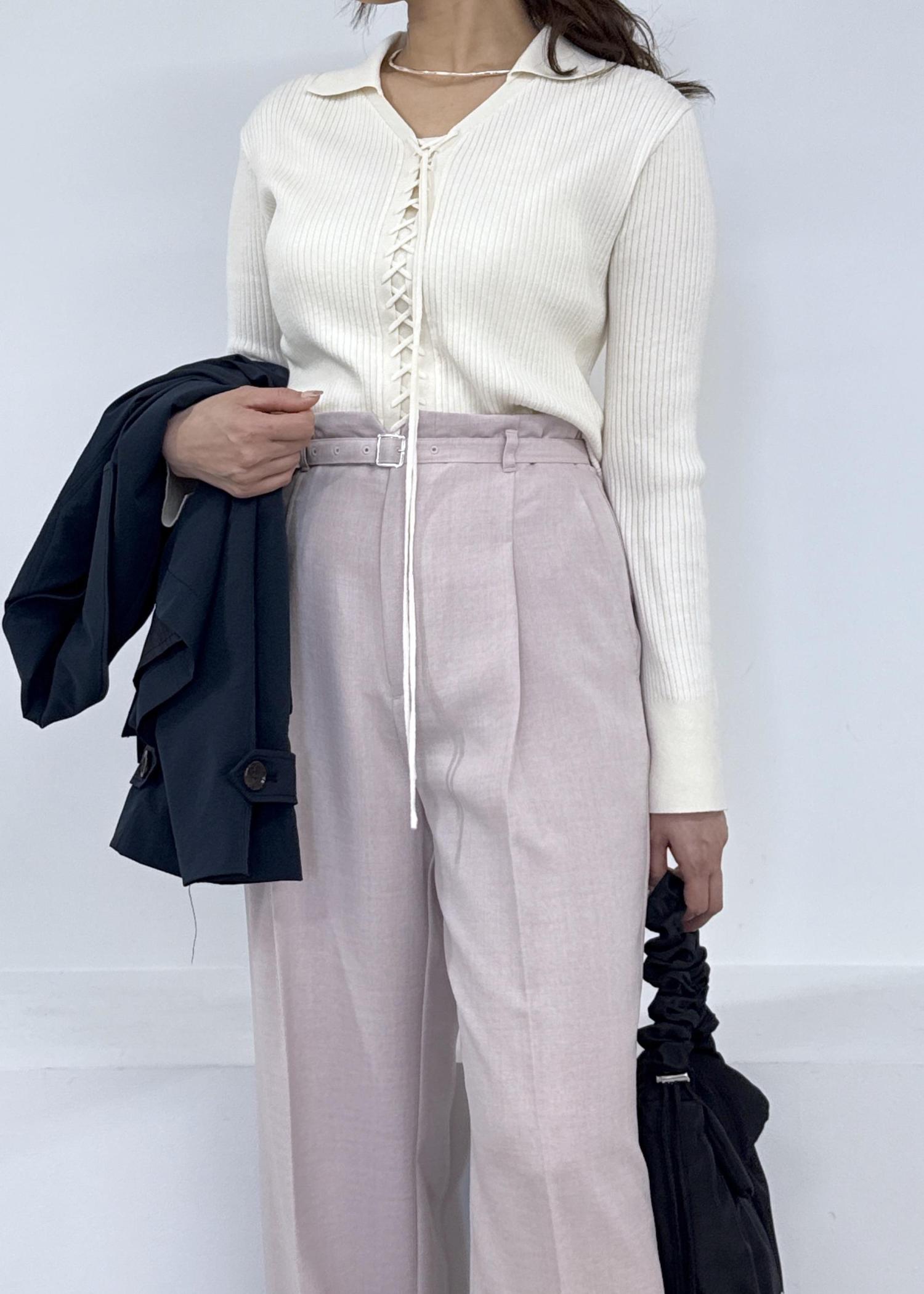 1枚で簡単に着映えの叶うレースアップリブニットです。