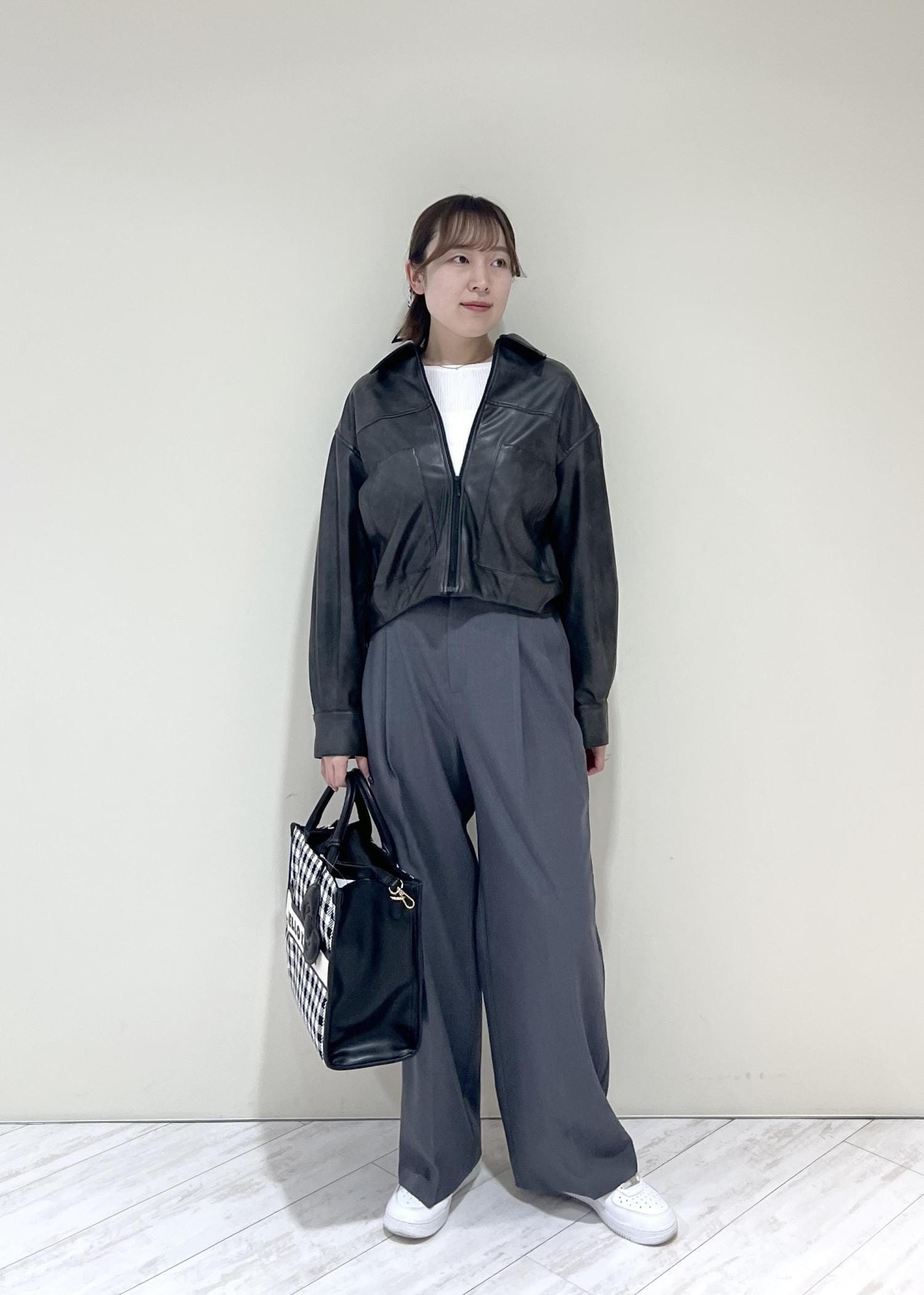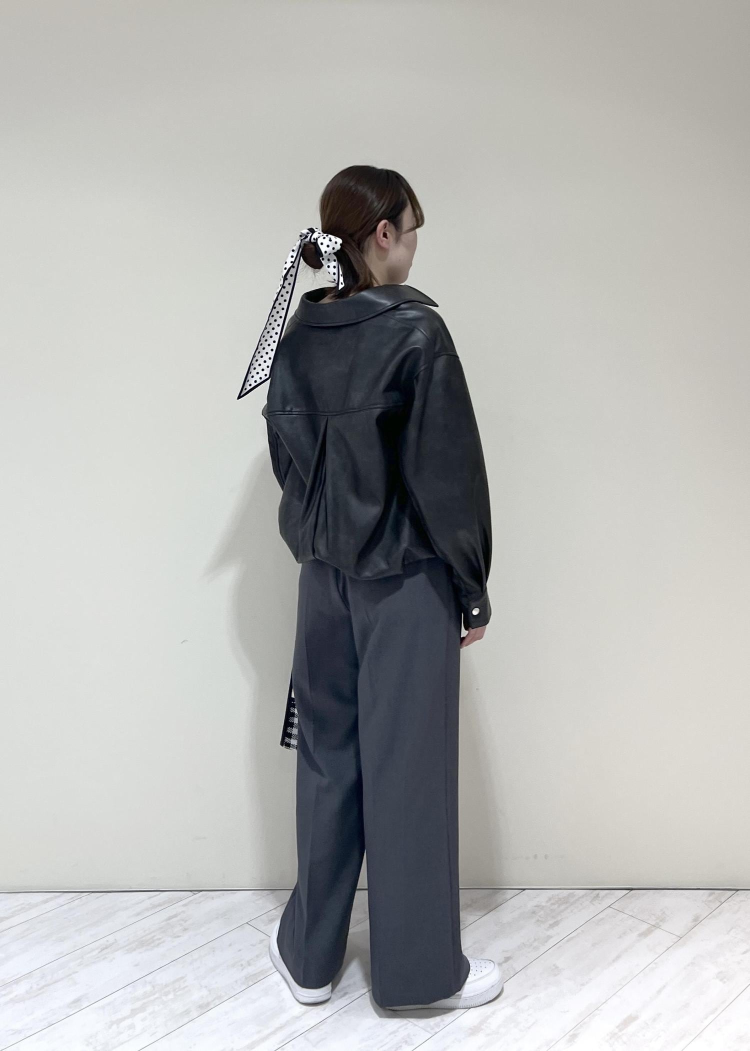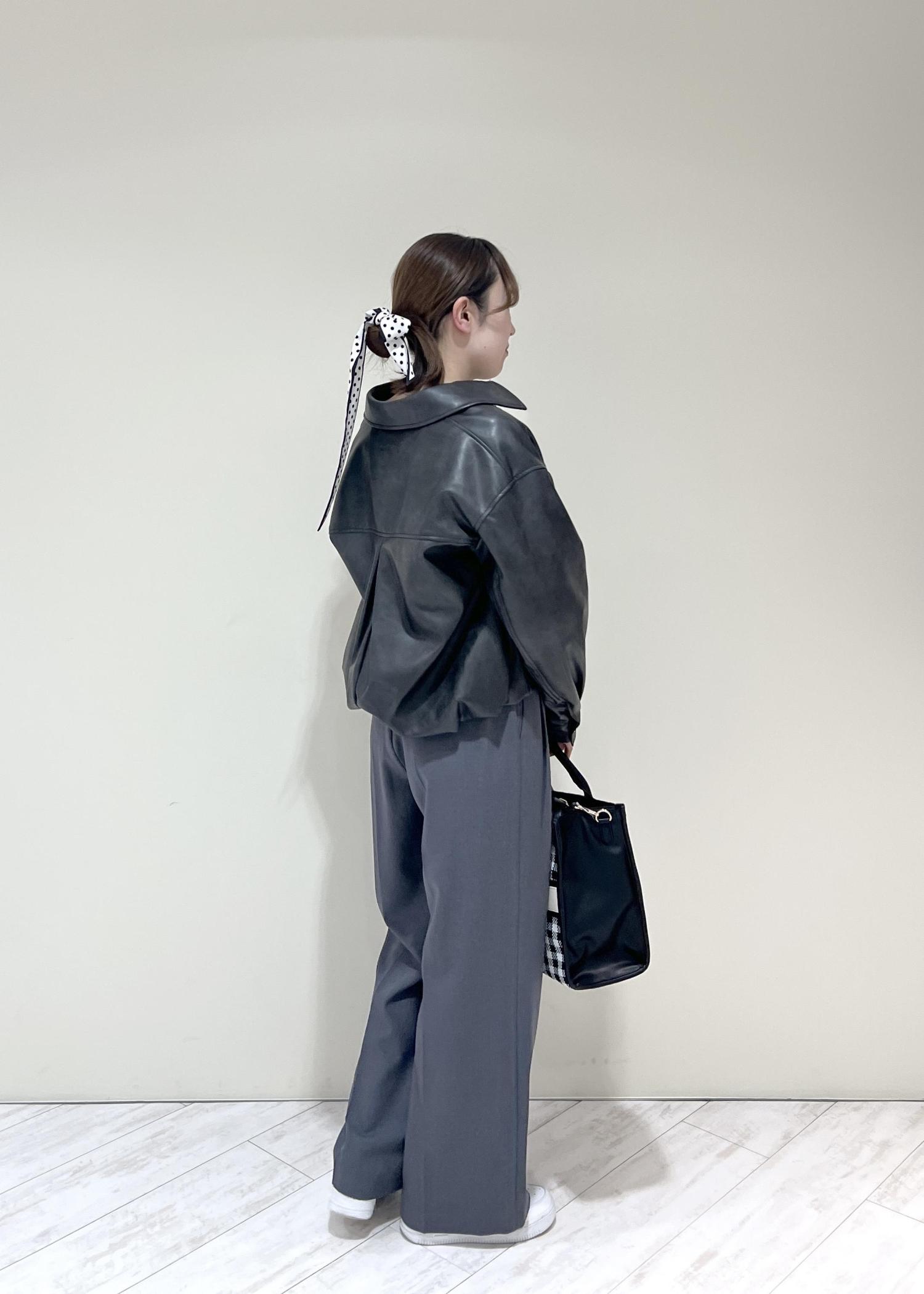 VISアウトポケット合皮ブルゾンブラック / F¥10,989レビューくしゅっとした裾と丸みのあるシルエットで柔らかい印象になります!程よくゆとりのあるサイズ感で中にも着込めます◎