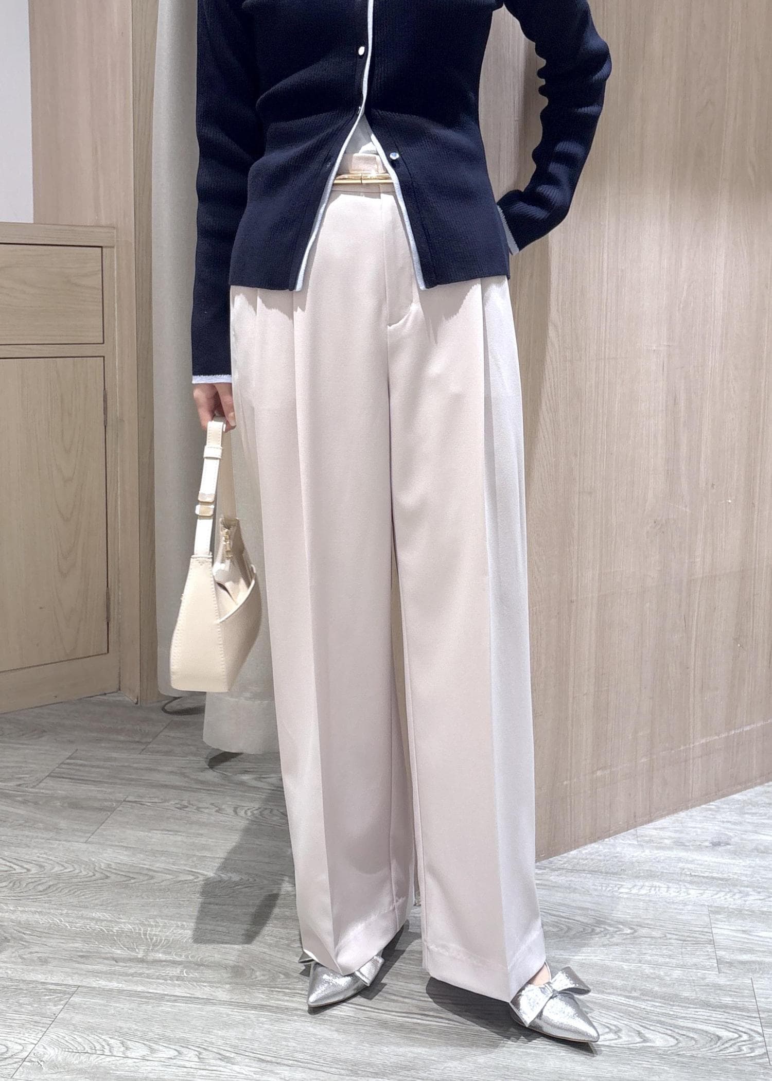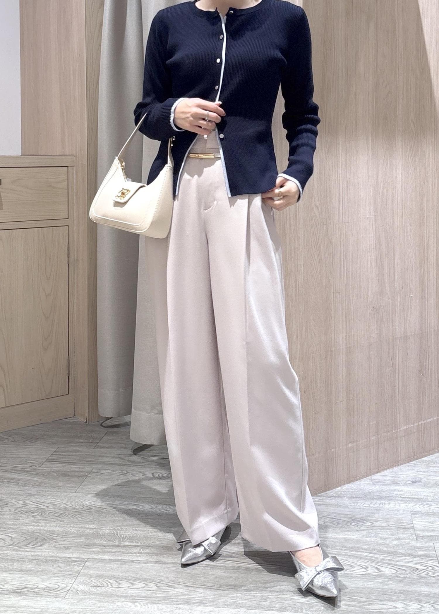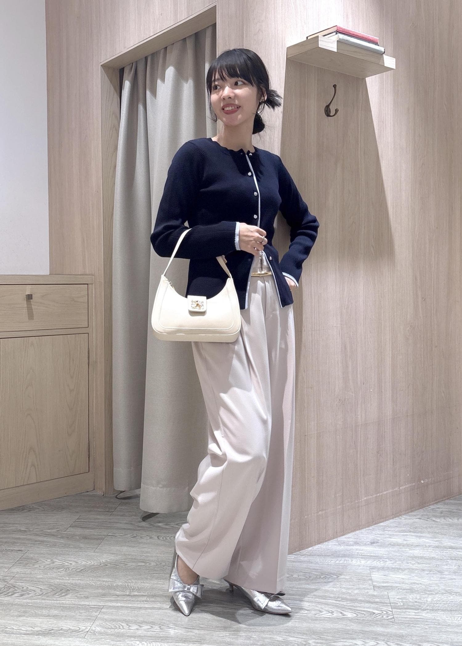 ワイドストレートパンツとあわせることで、より縦のラインが強調され、スッキリとした印象に◎