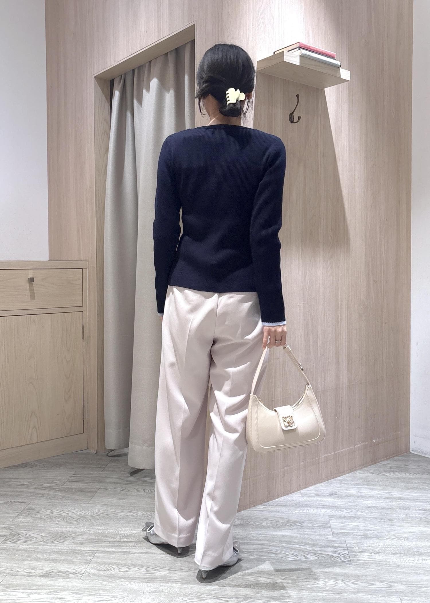 ネイビーが重たくならないようにパンツと小物でホワイトを合わせました!