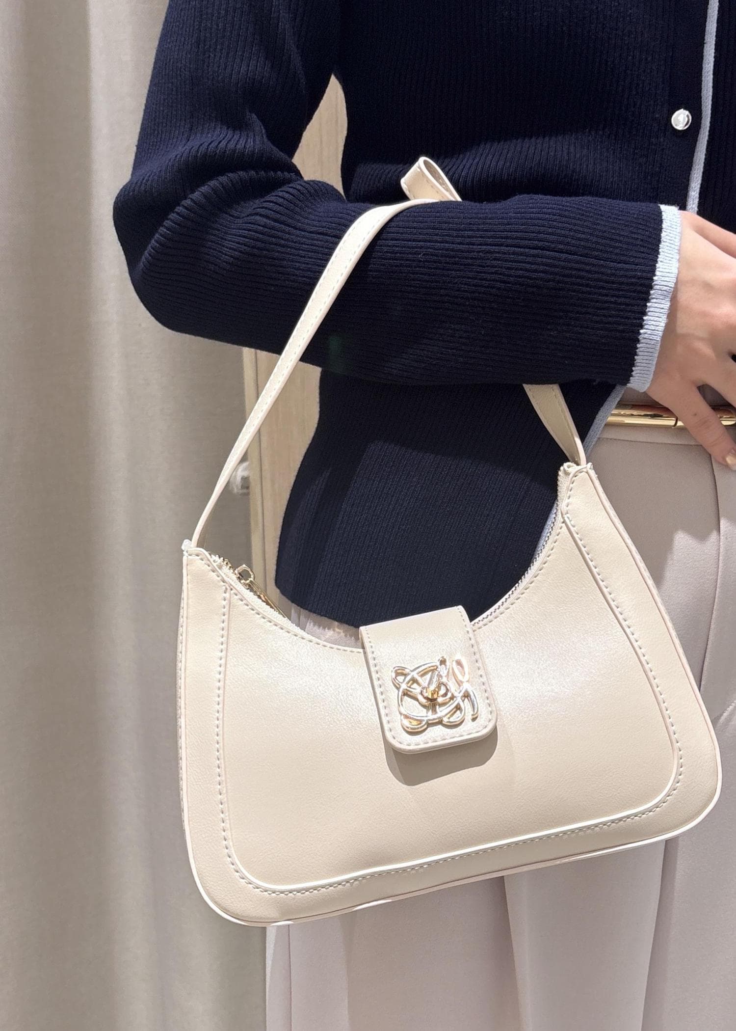ショルダー部分のリボンがさりげなくてかわいいです!ファスナーがついてるので安心して使えます。 -