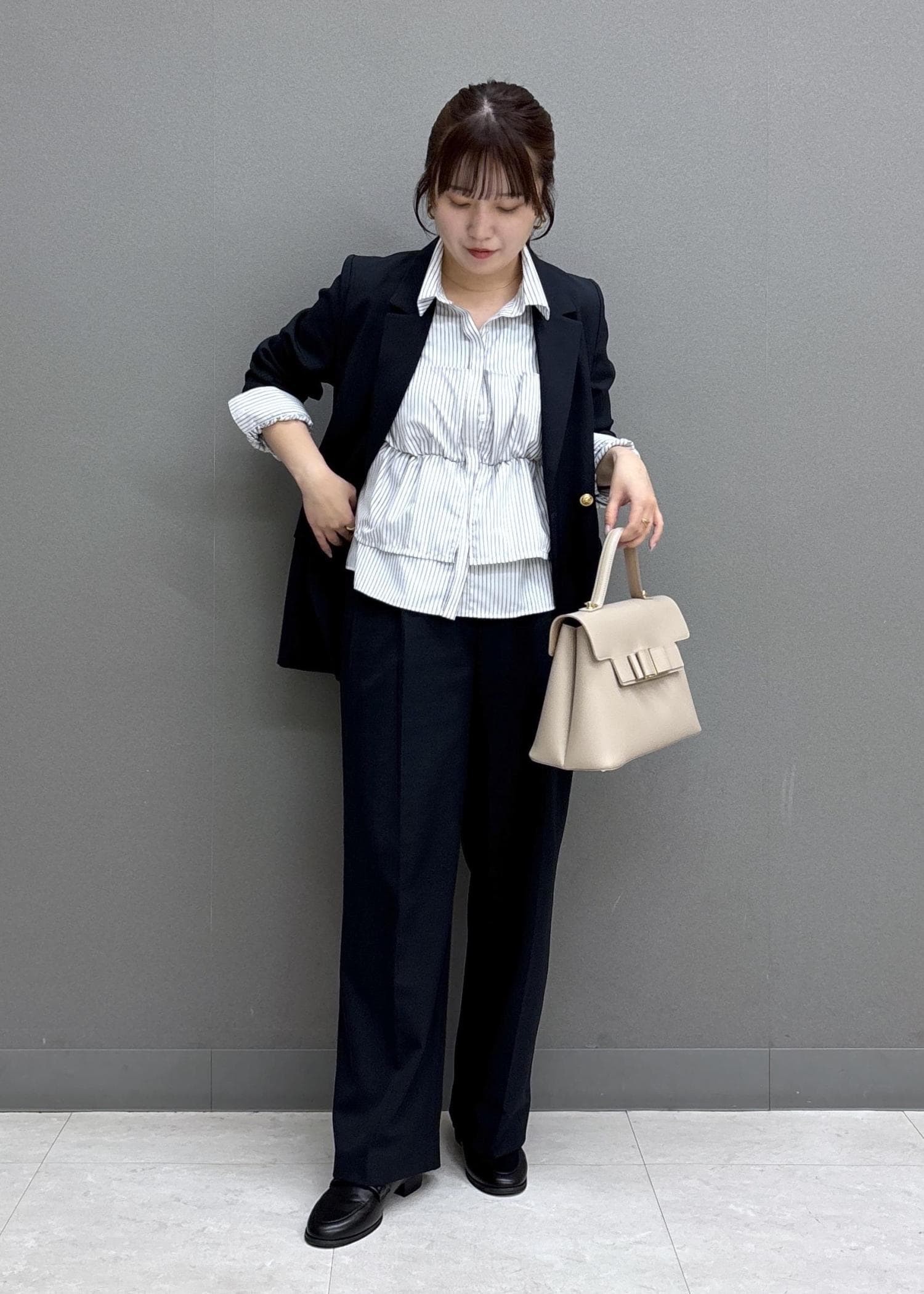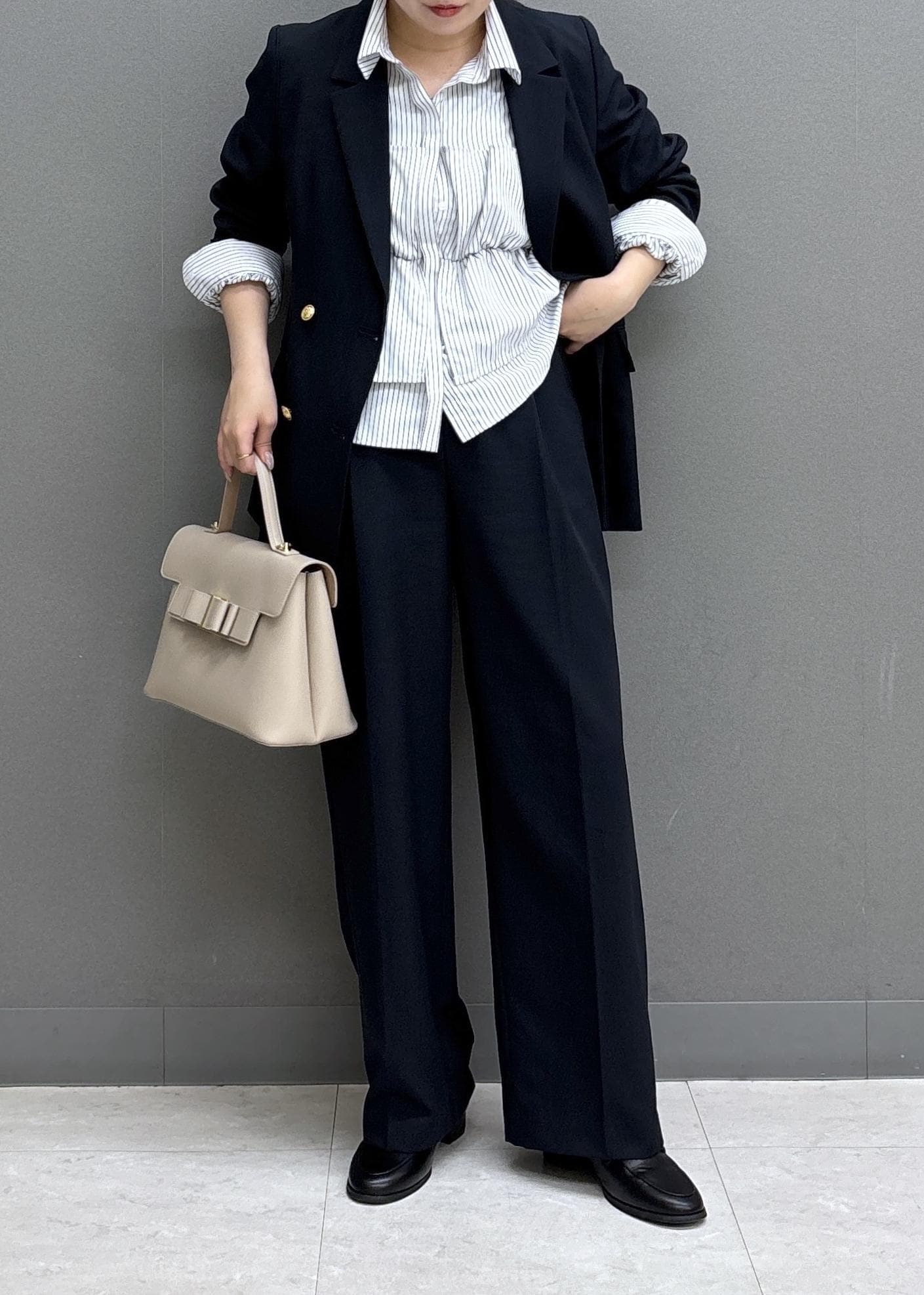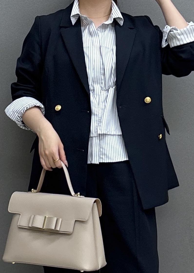 2BUY10%OFFVIS【美easy】コンフォート金ボタンジャケット/イージーケア・UVケア・セットアップ対応ネイビー / M¥8,899レビュー160㎝ / Mサイズ着用。ヒップまで隠れる着丈で安心感があります!袖は手の甲にかかる長さだったので、折り返して着ても◎腕まわりがゆったりしているのでシャツはもちろん、薄手のニットも重ね着できました!さらっとした素材で軽い着心地です♩
