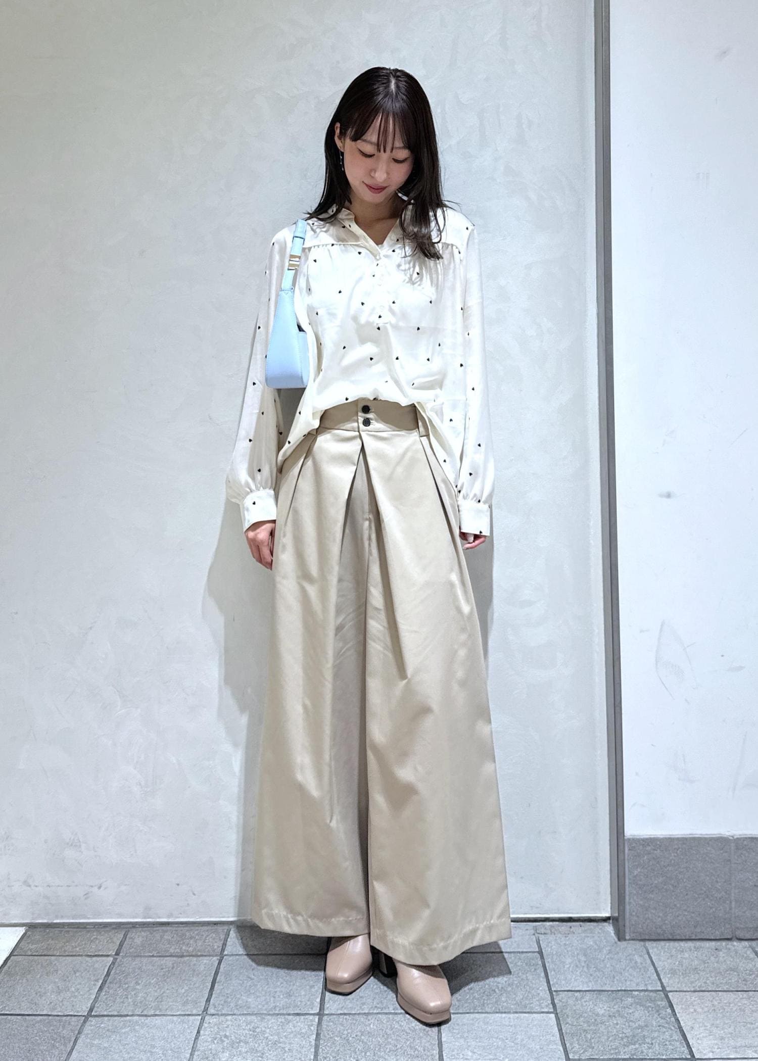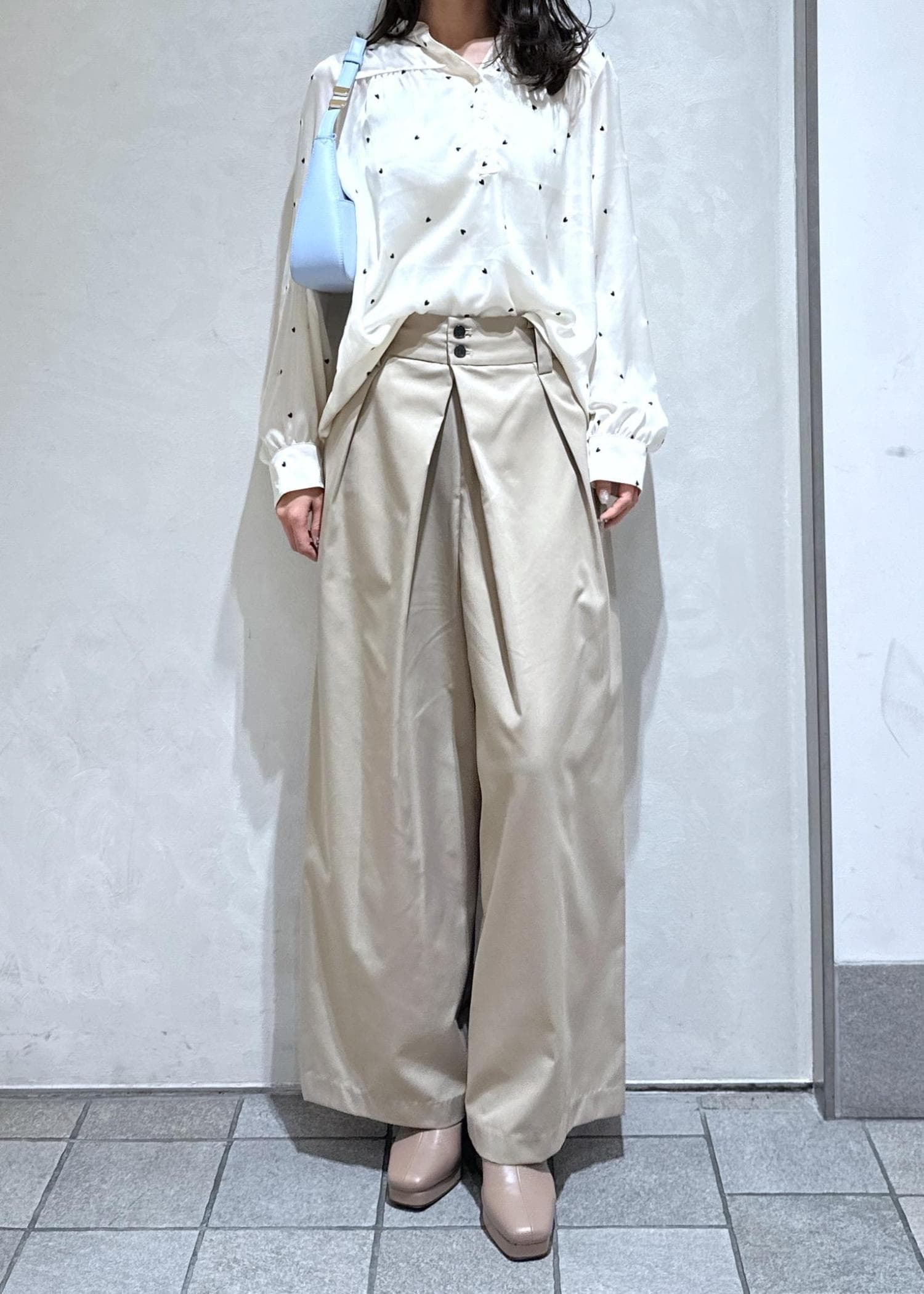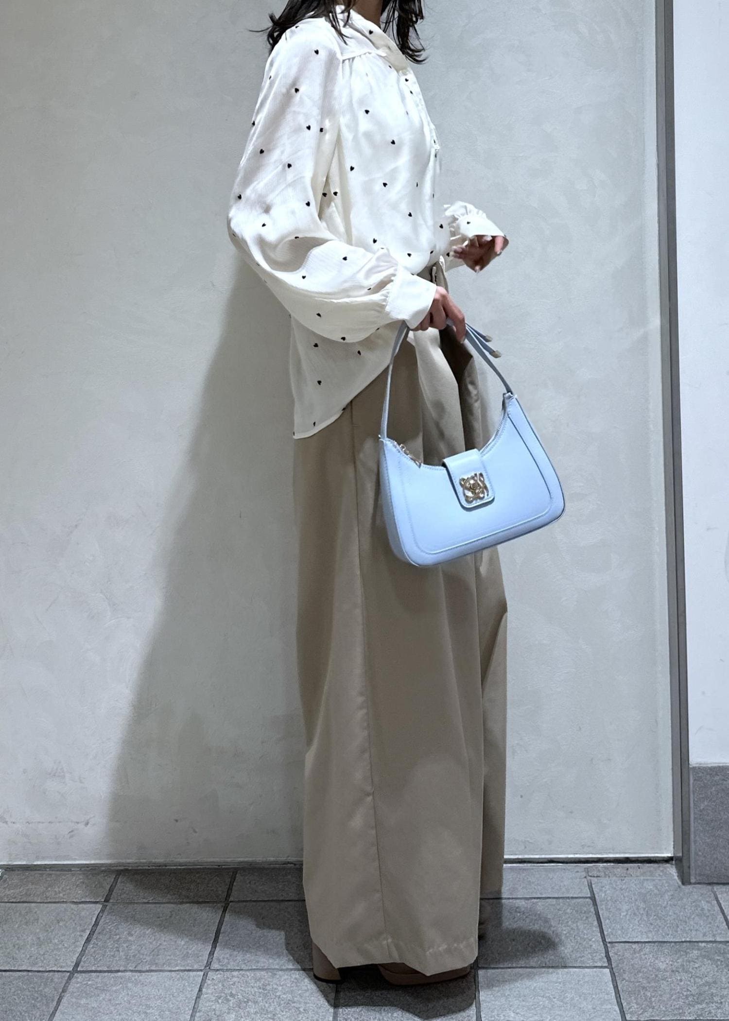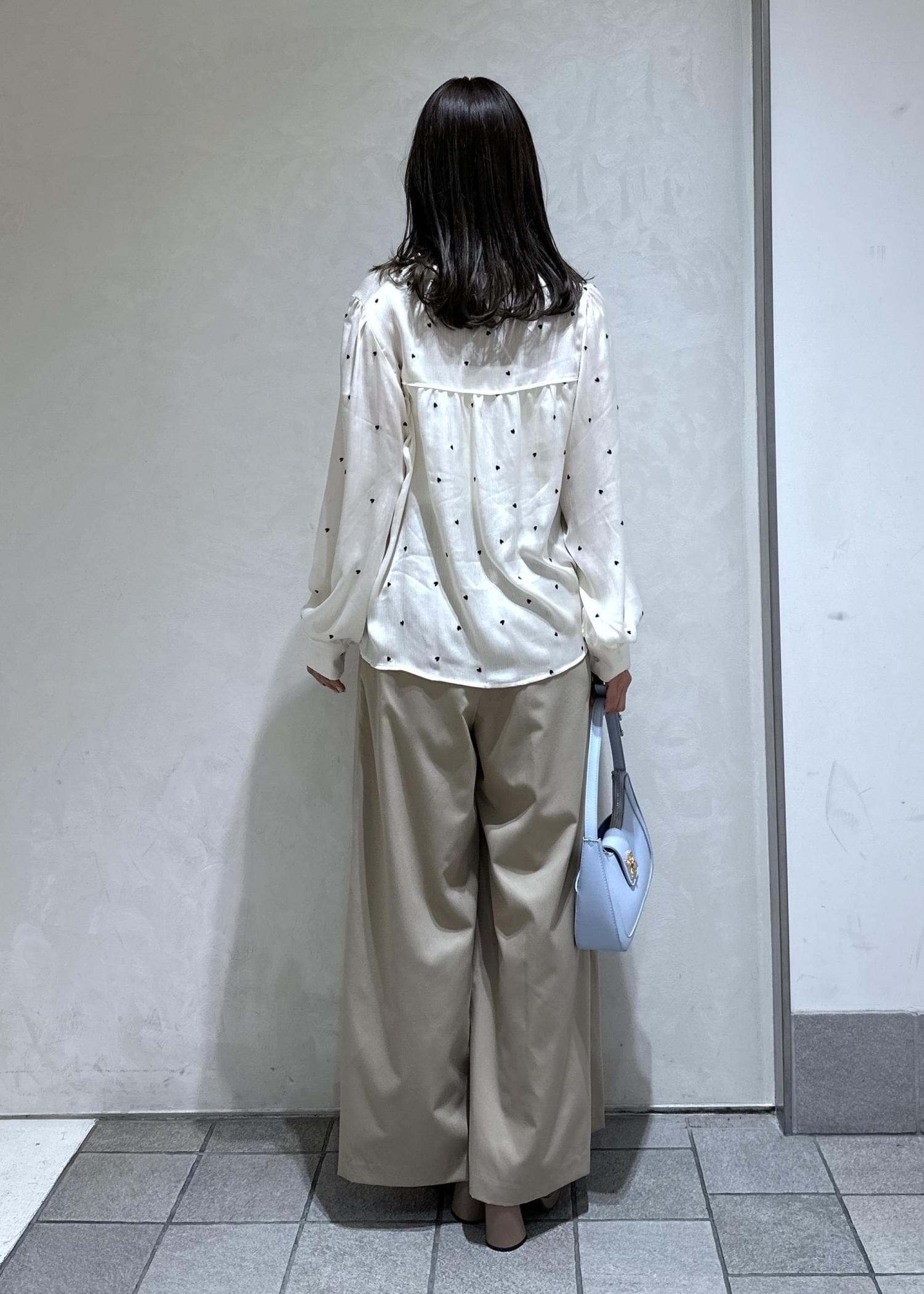 ハート柄のブラウスでさりげない可愛さをプラスした
