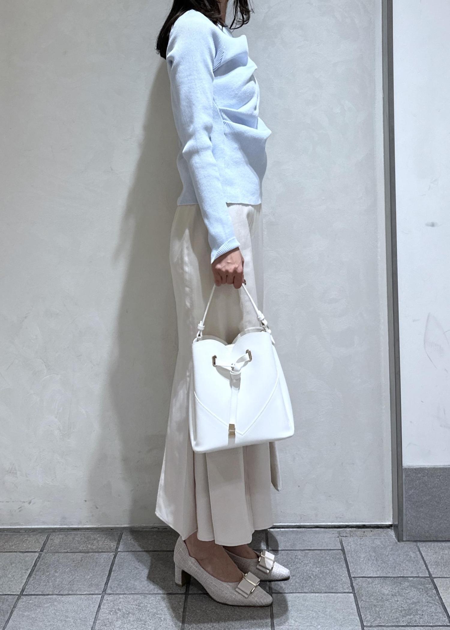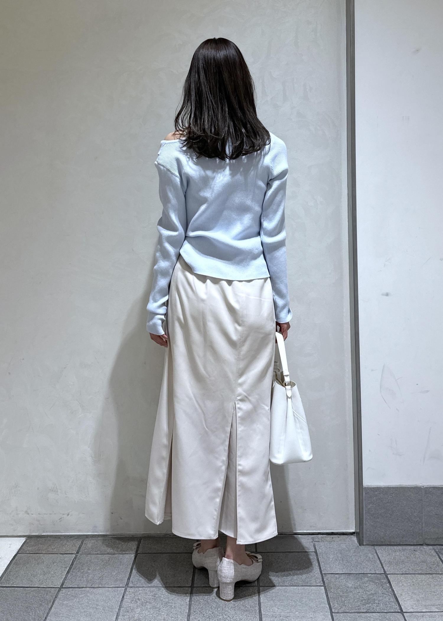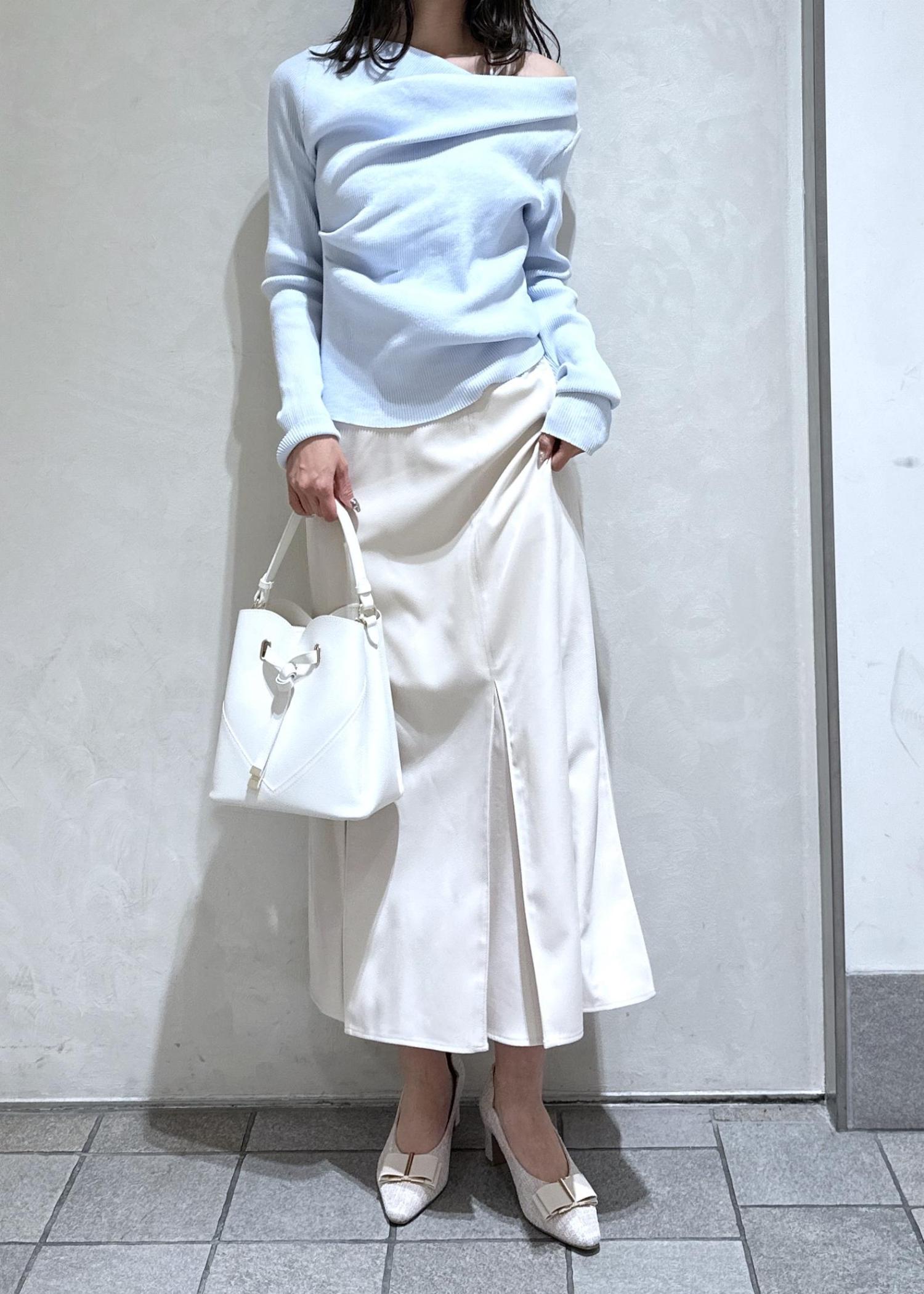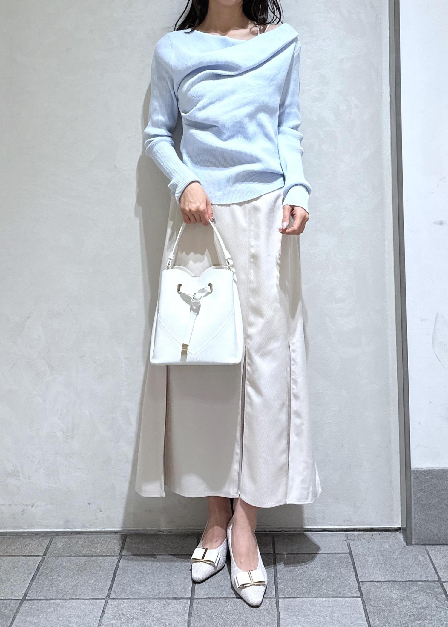 VISドレープオフショルダーリブニット/イージーケアサックス / F¥4,389レビュードレープデザインがキレイに鎖骨を見せてくれて華奢見えします。きれいめにもカジュアルにも着用出来ます♪