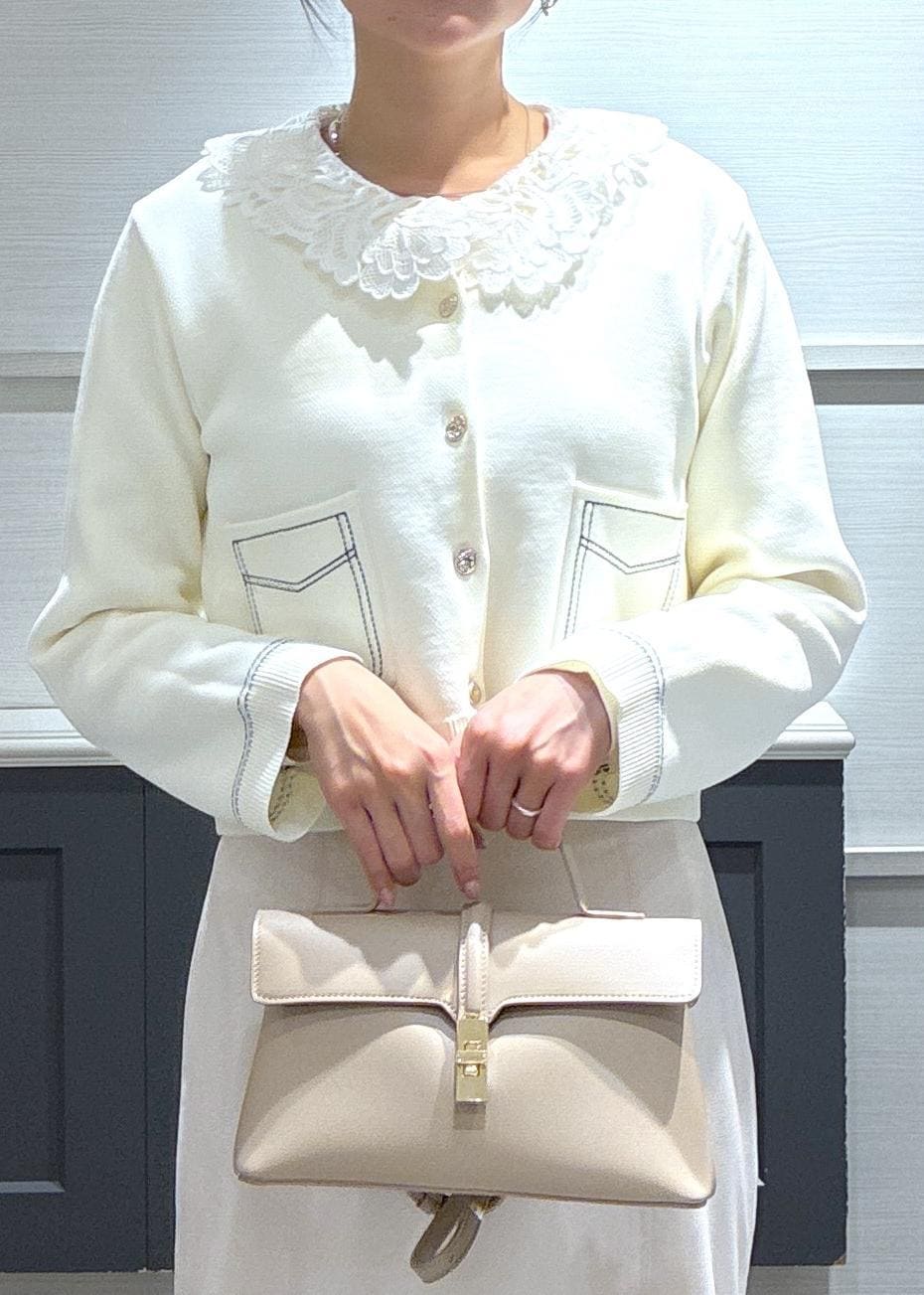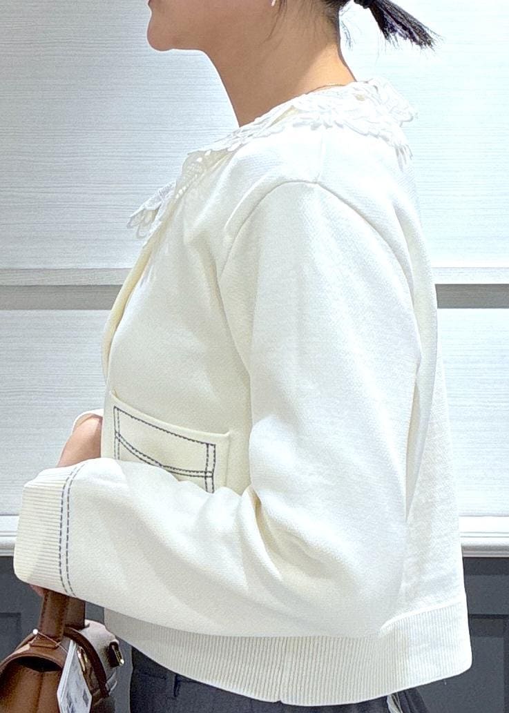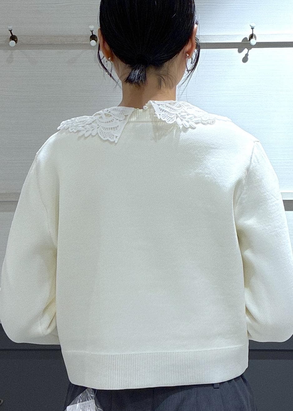 ステッチカーディガン×襟レースのレイヤードが今年らしくてオシャレになりました♡