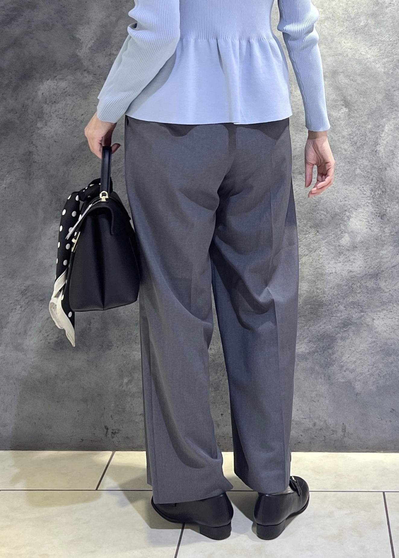 素材が春素材で薄手になっているのと、タックが2タックになっているのでお尻周りのシルエットに余裕があります。 -