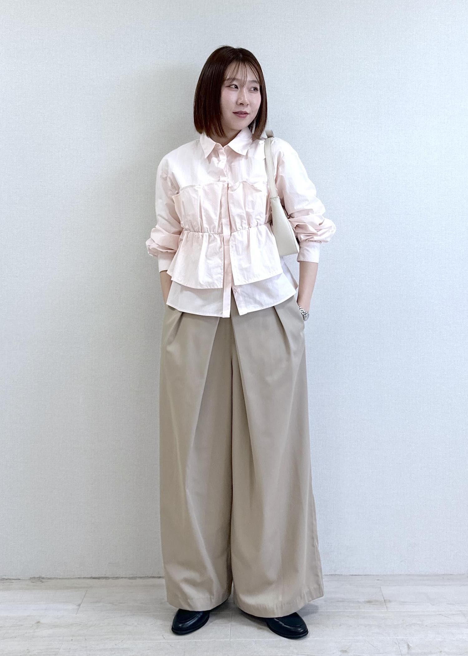 全部開けても閉めてもかわいいですが、個人的に上2つ釦開けが、抜け感も出て好みでした♡