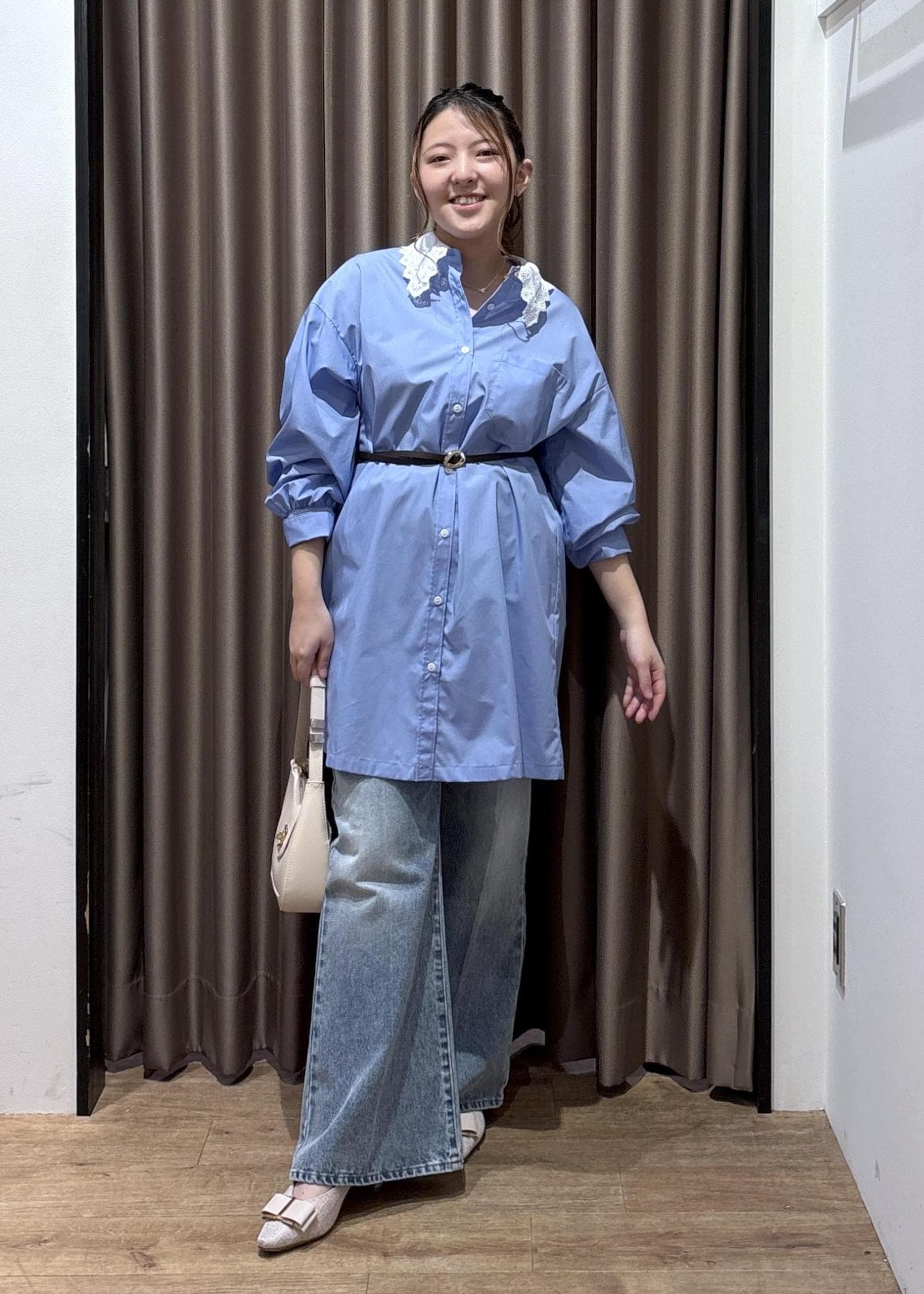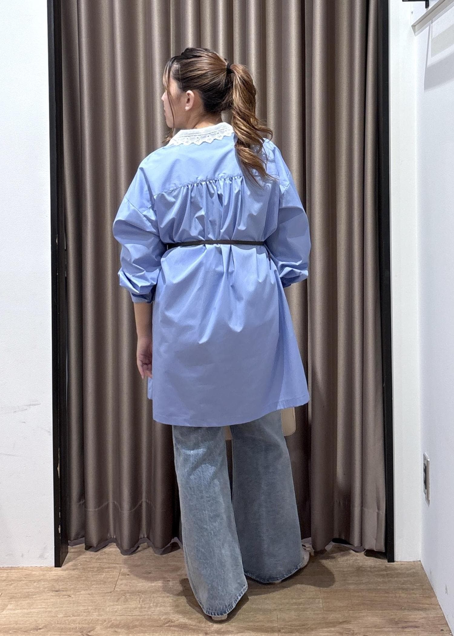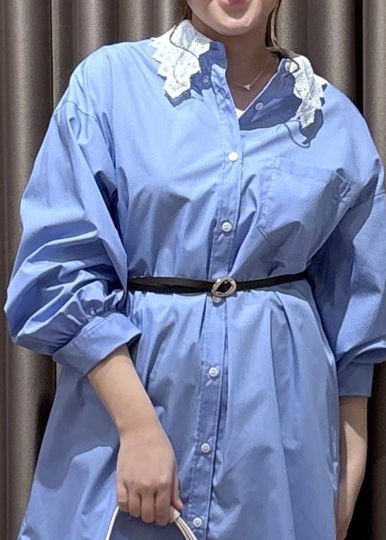 2BUY10%OFFVIS襟レース付きミニ丈シャツワンピサックス / F¥7,689レビュー襟がレースのシャツワンピ!