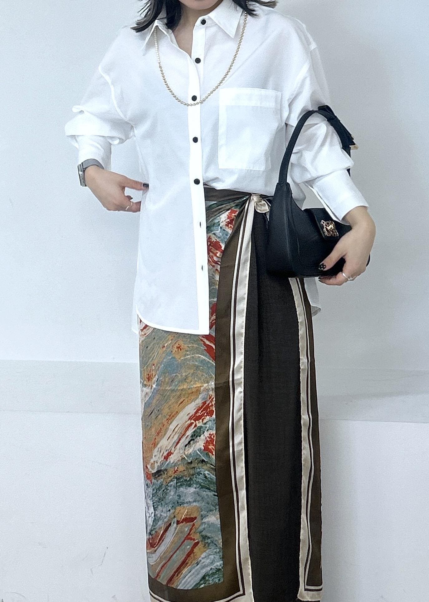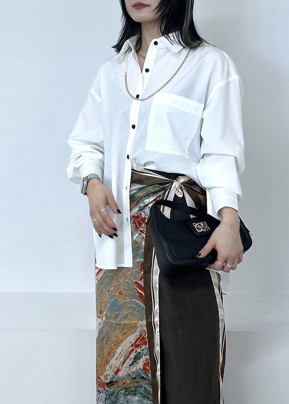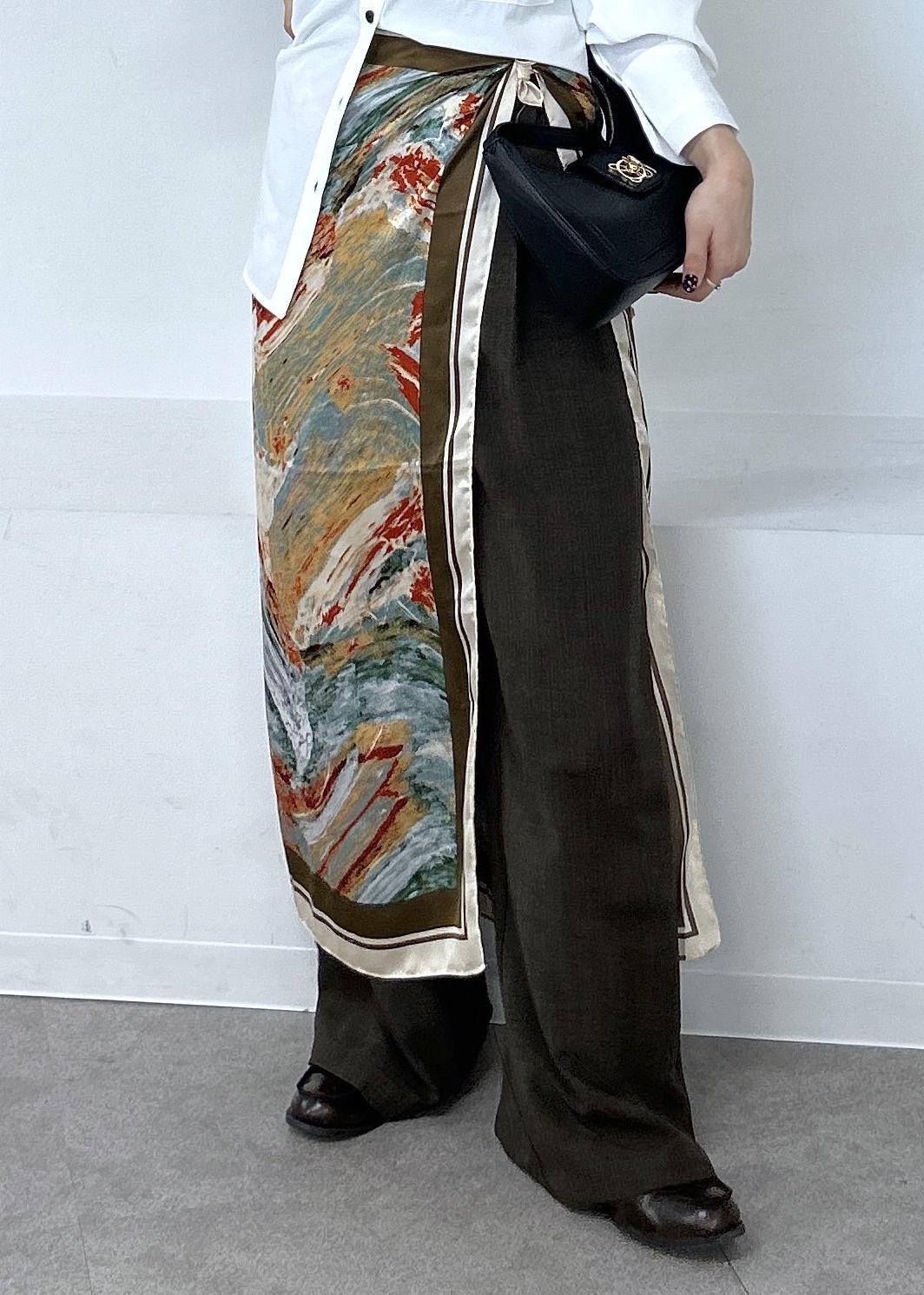 ベージュ系の柄はとっても写真映えするので、腰巻きで柄を見せるのがおススメです♡