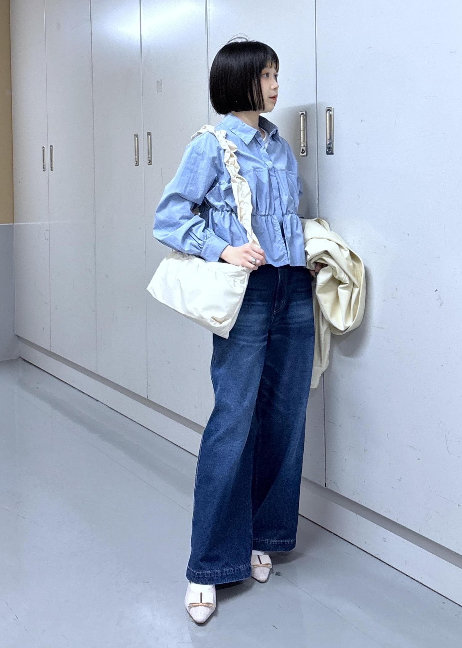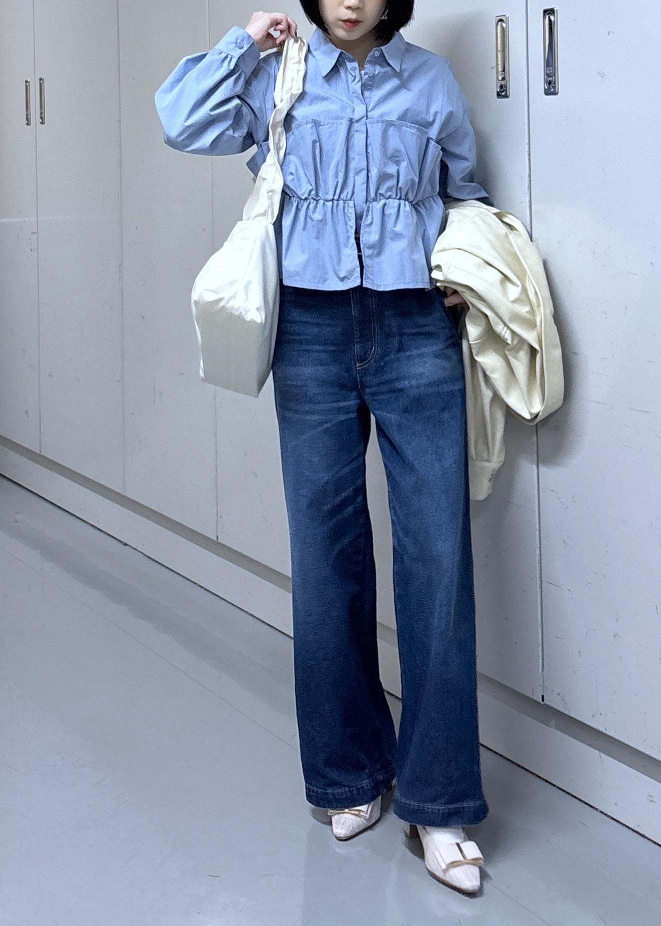 ブルーシャツと濃いデニムの相性とても良いです☺︎