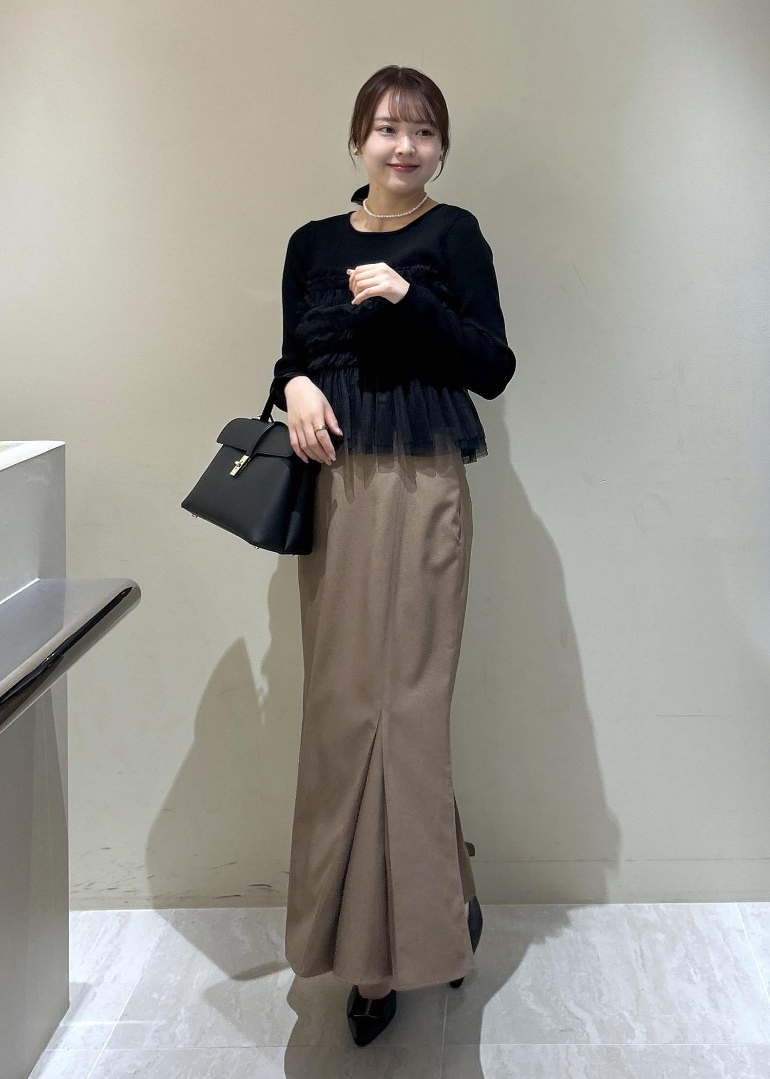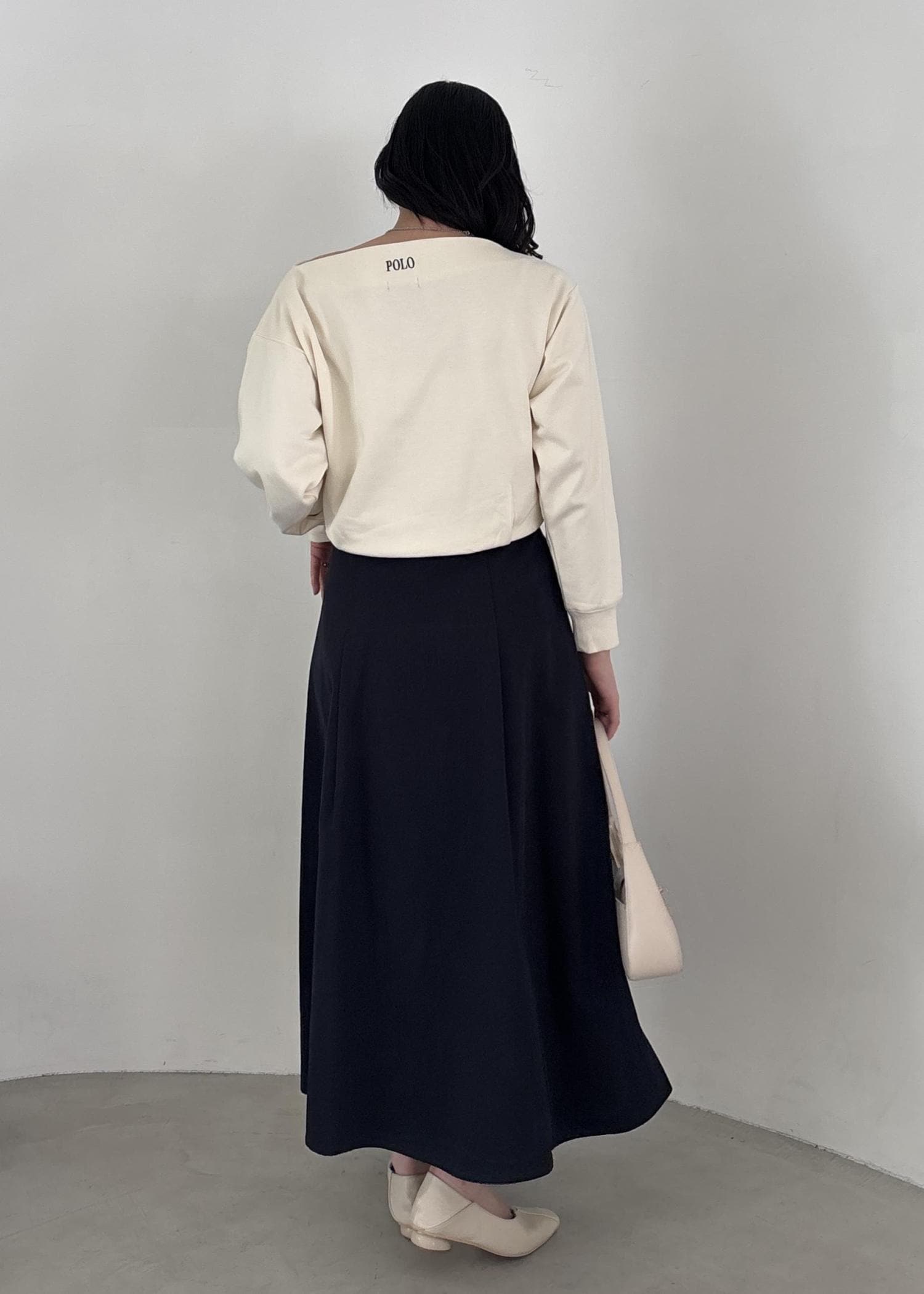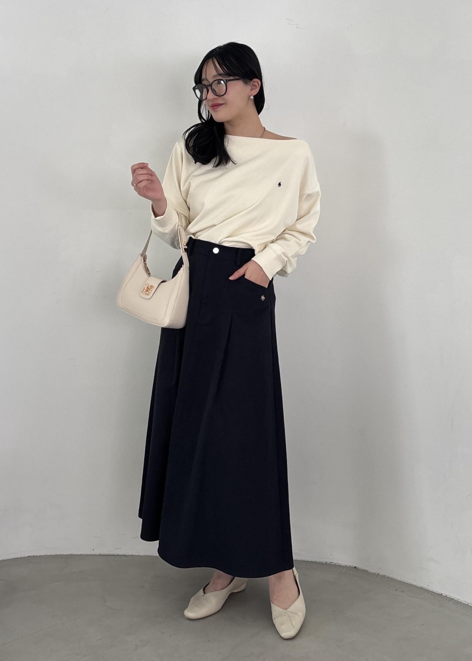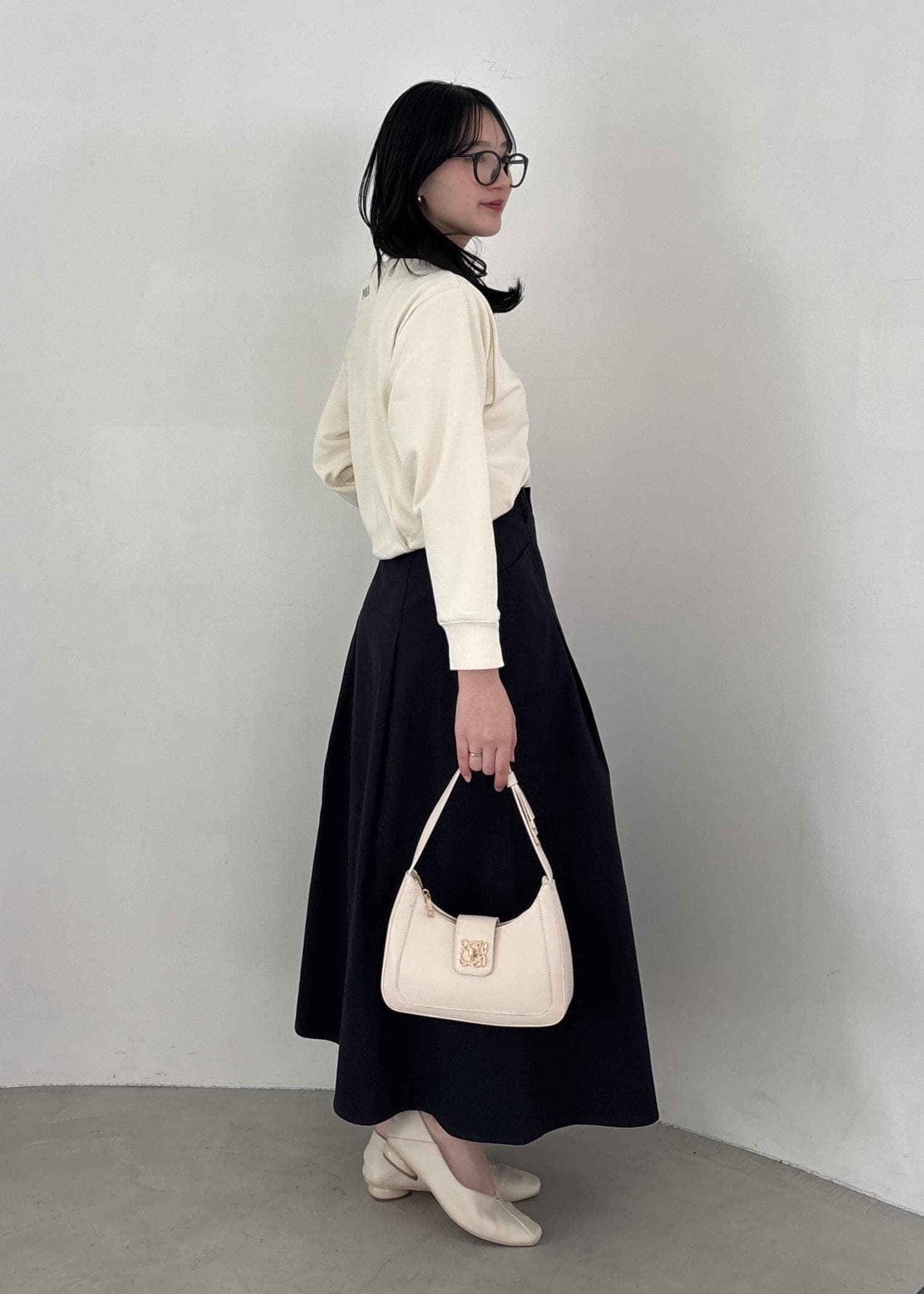 ハリのある生地感で、程よく広がるシルエットが綺麗です!サラッとしていて張り付く感じはなく、足捌きも良いです◎ -