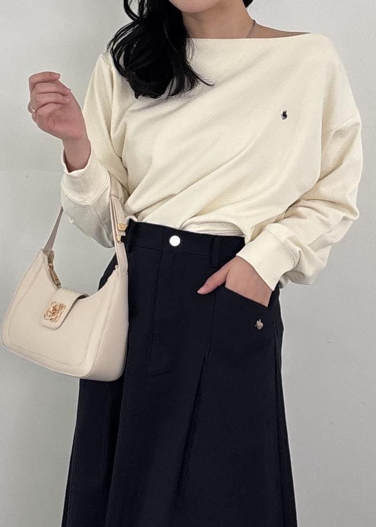 ラフになりがちなスウェットですが程よい肌見せで抜け感を出せ、さりげなくおしゃれ見えします◎