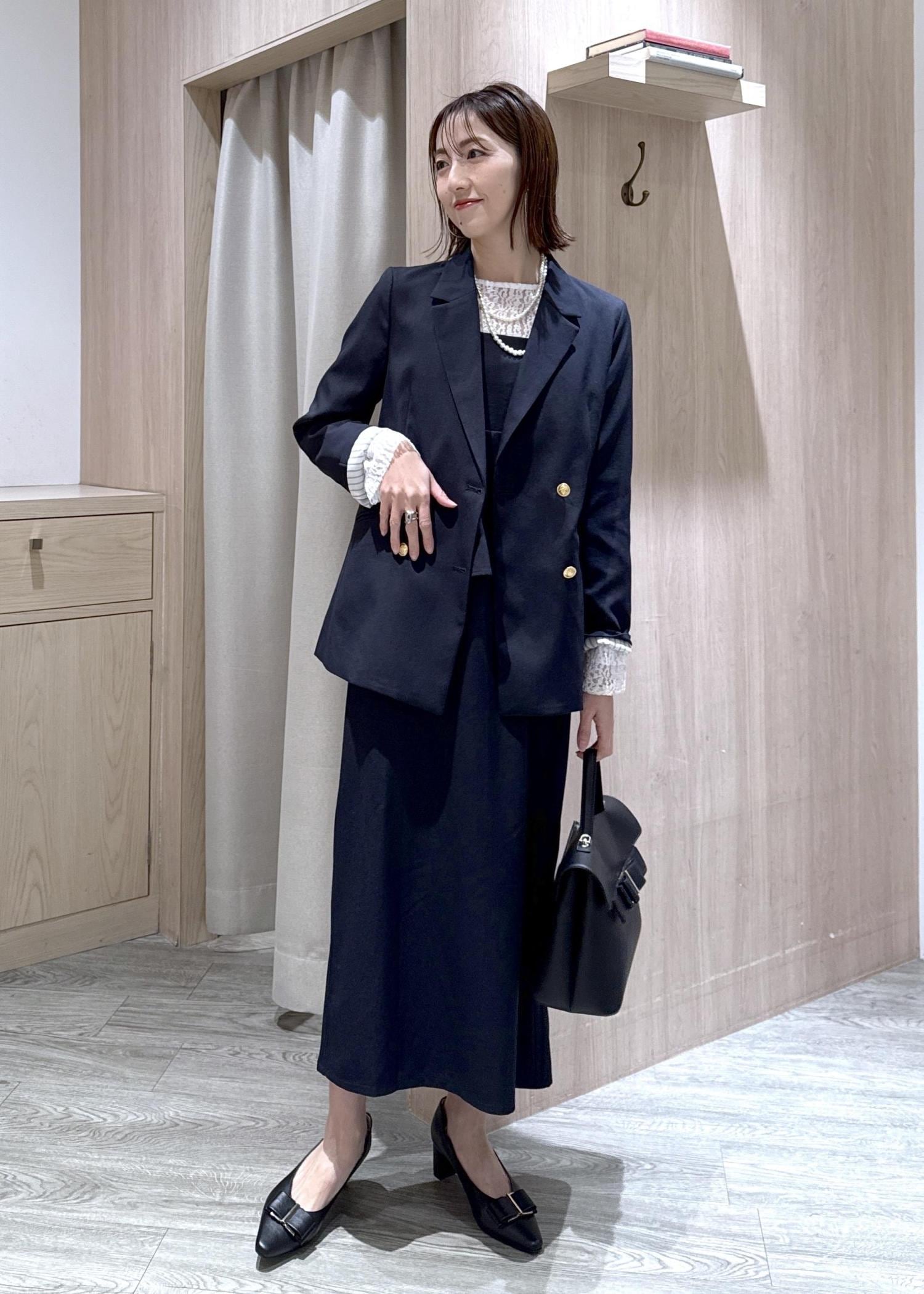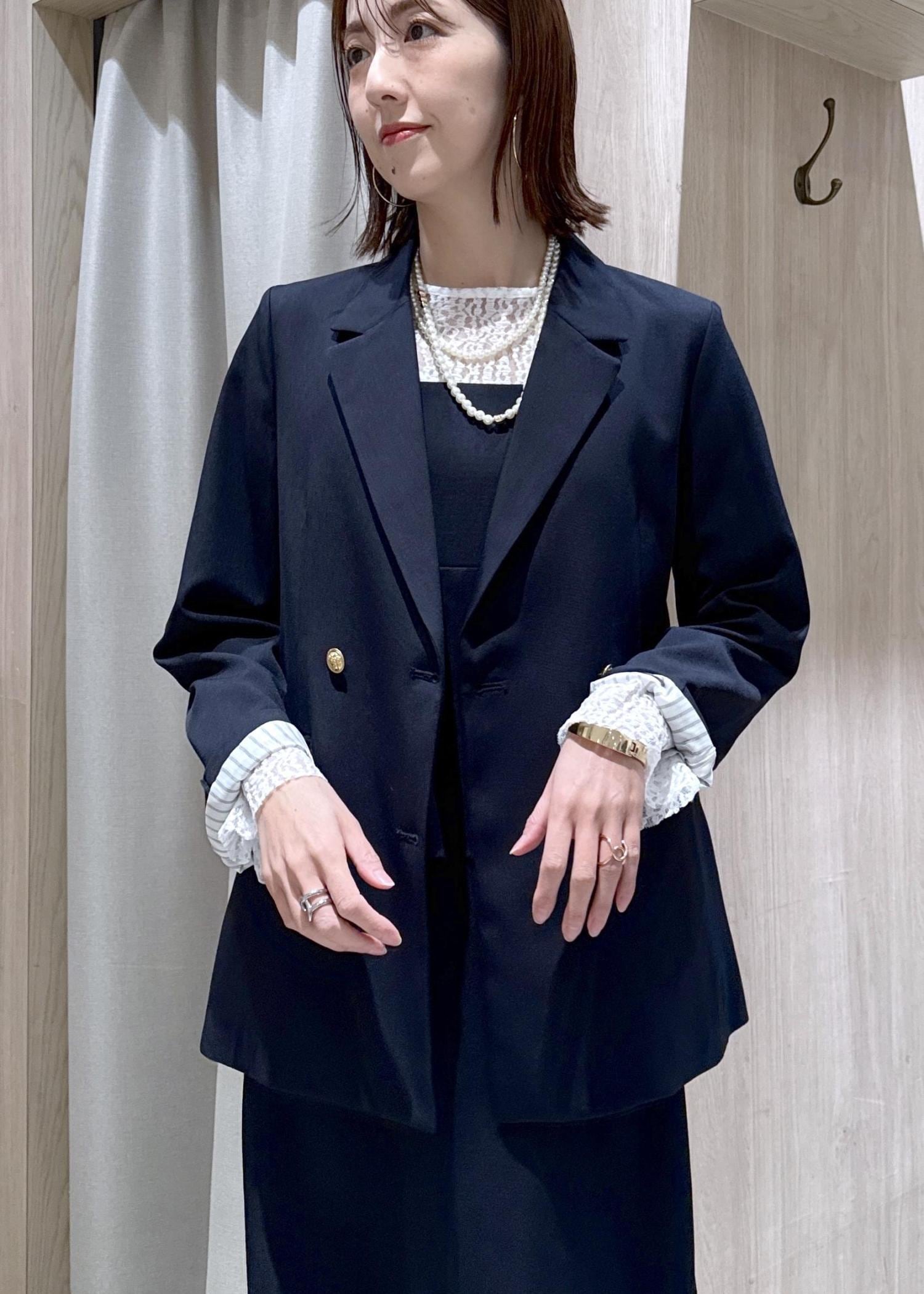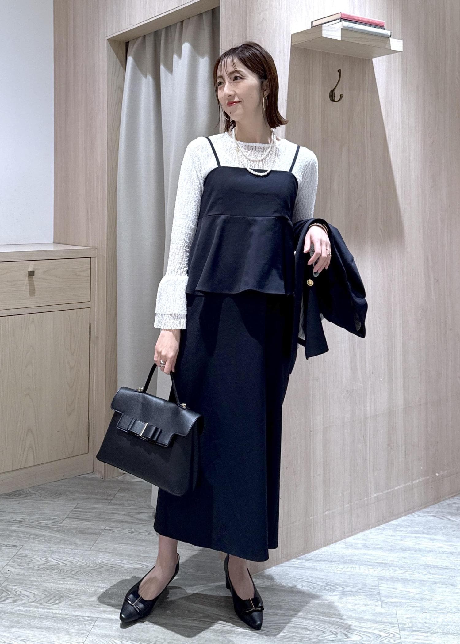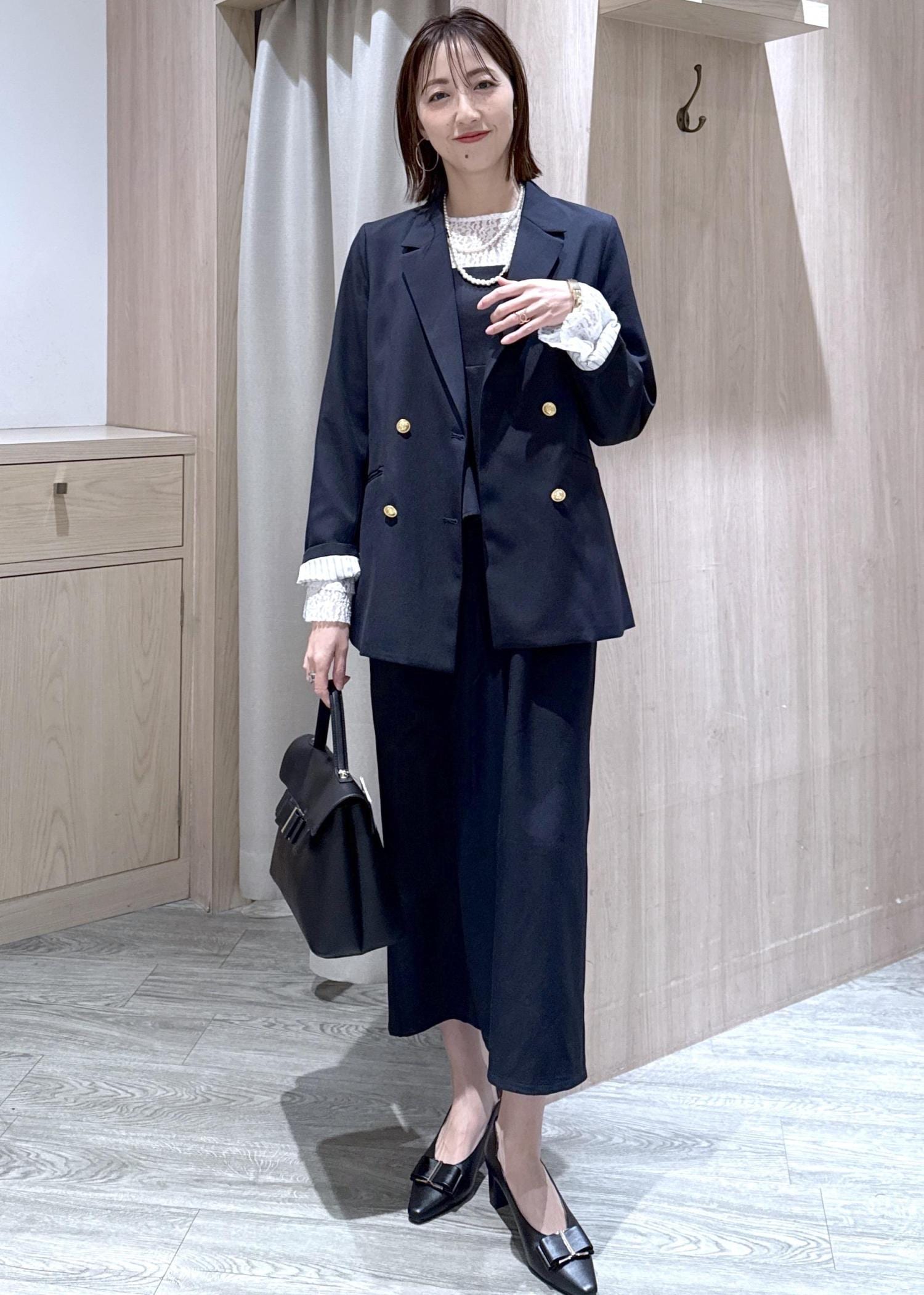 コンフォートジャケットに同シリーズのキャミワンピースを合わせた、セレモニーコーデです!