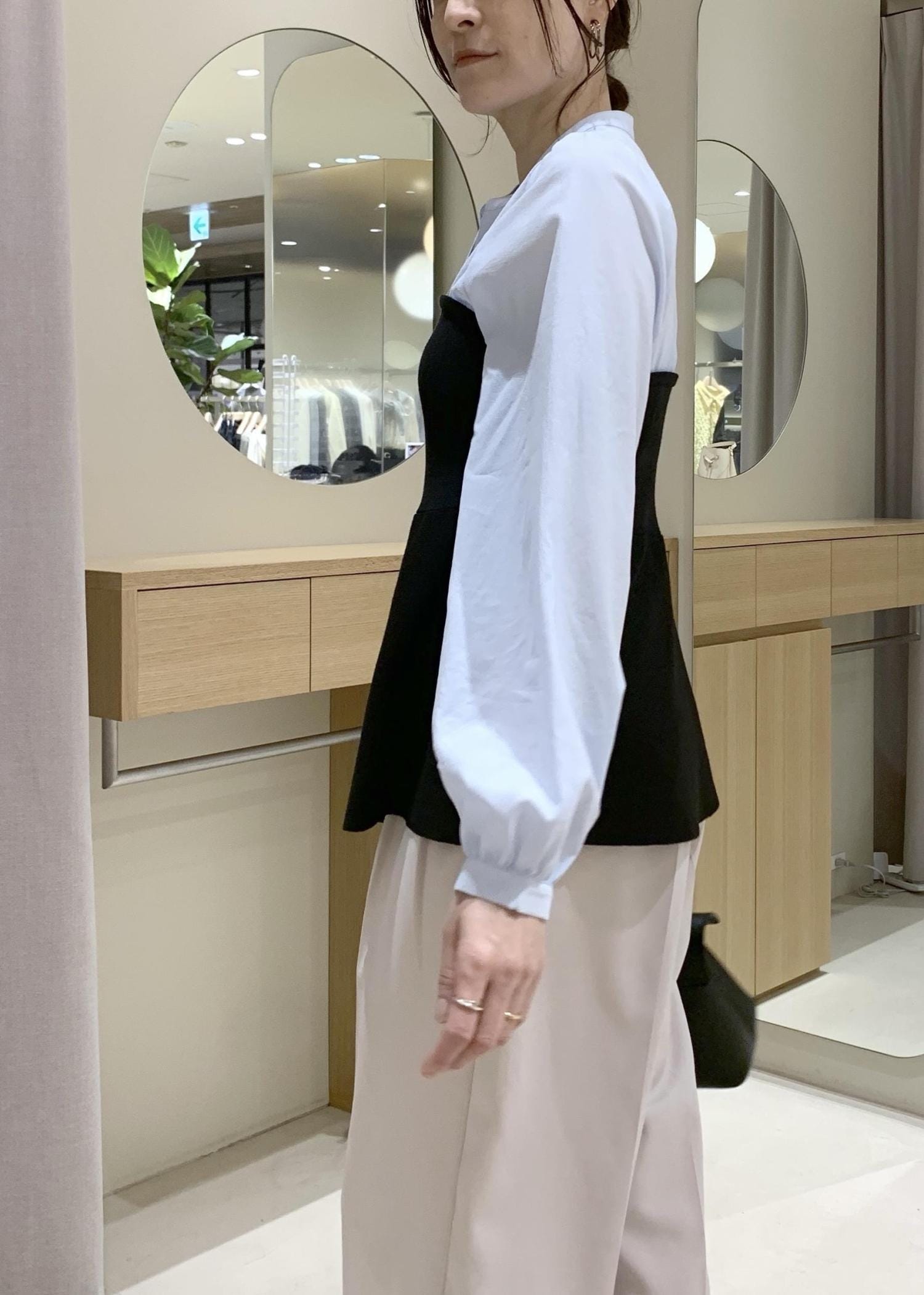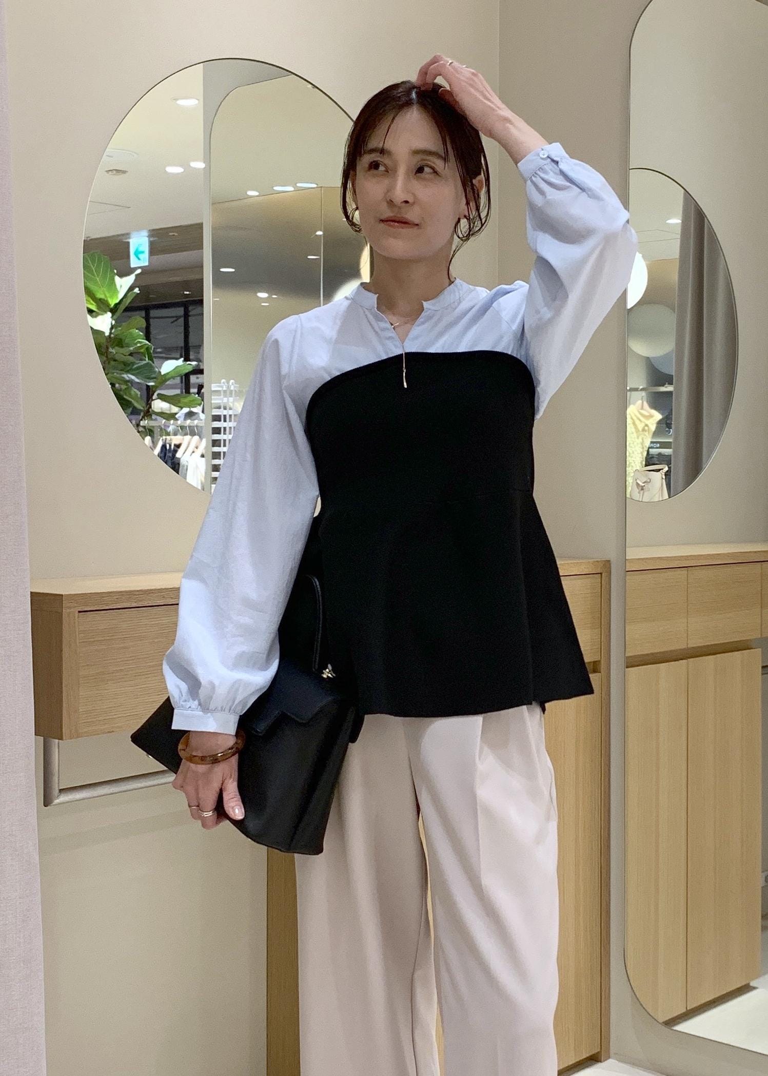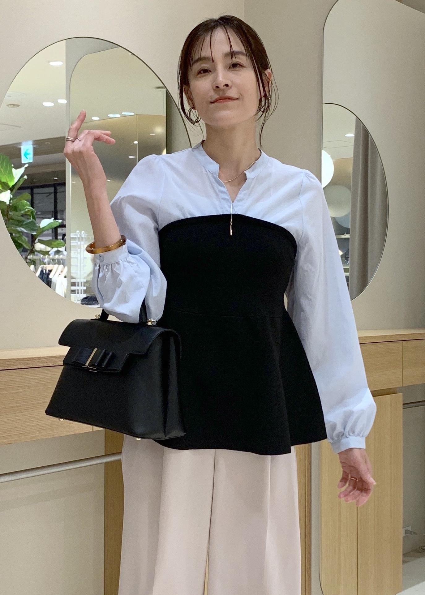 予約VISペプラムニットドッキングブラウスブラック / F¥6,589レビューシャツとのドッキングでメリハリがあり着映えします。