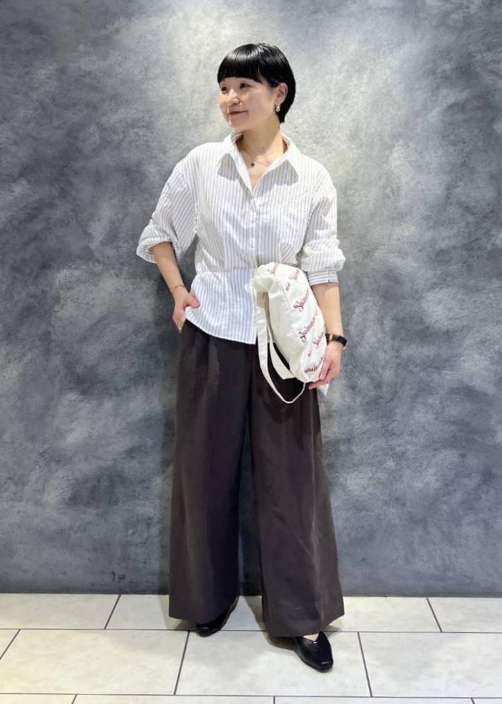 ゆったりしたシルエットながら、やや艶のある柔らかな素材なので綺麗めにも◎