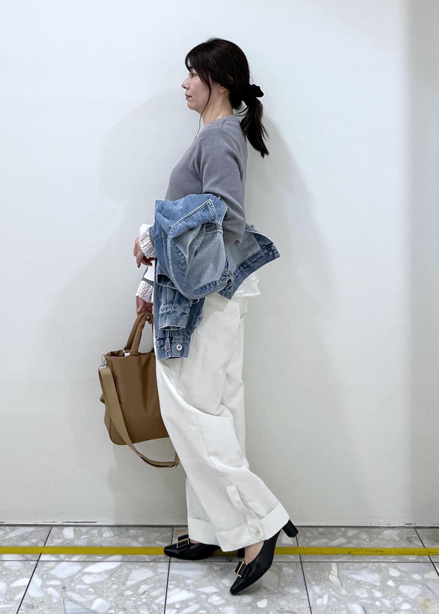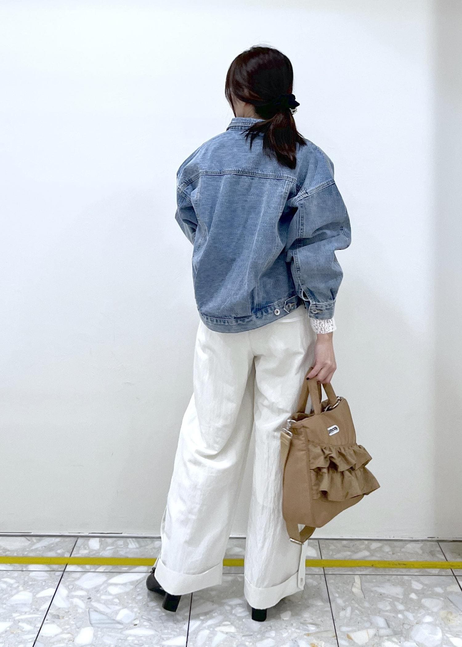 形がややゆったりとしたオーバーサイズでインナーも少し厚手のものもまだまだインナーとして着られるサイズ感です。 -