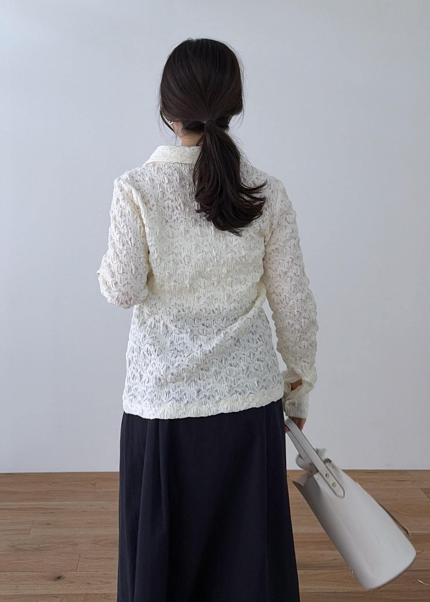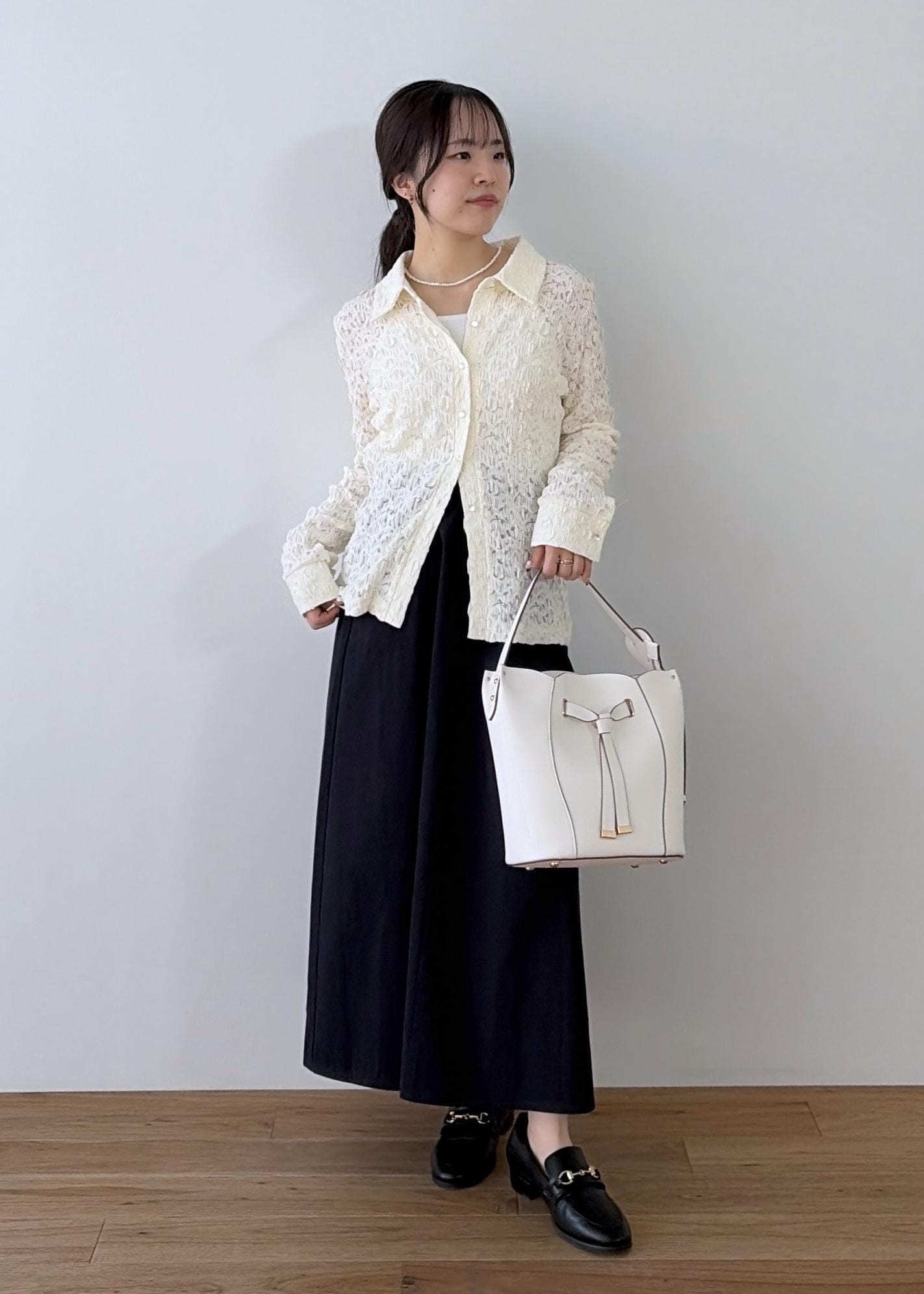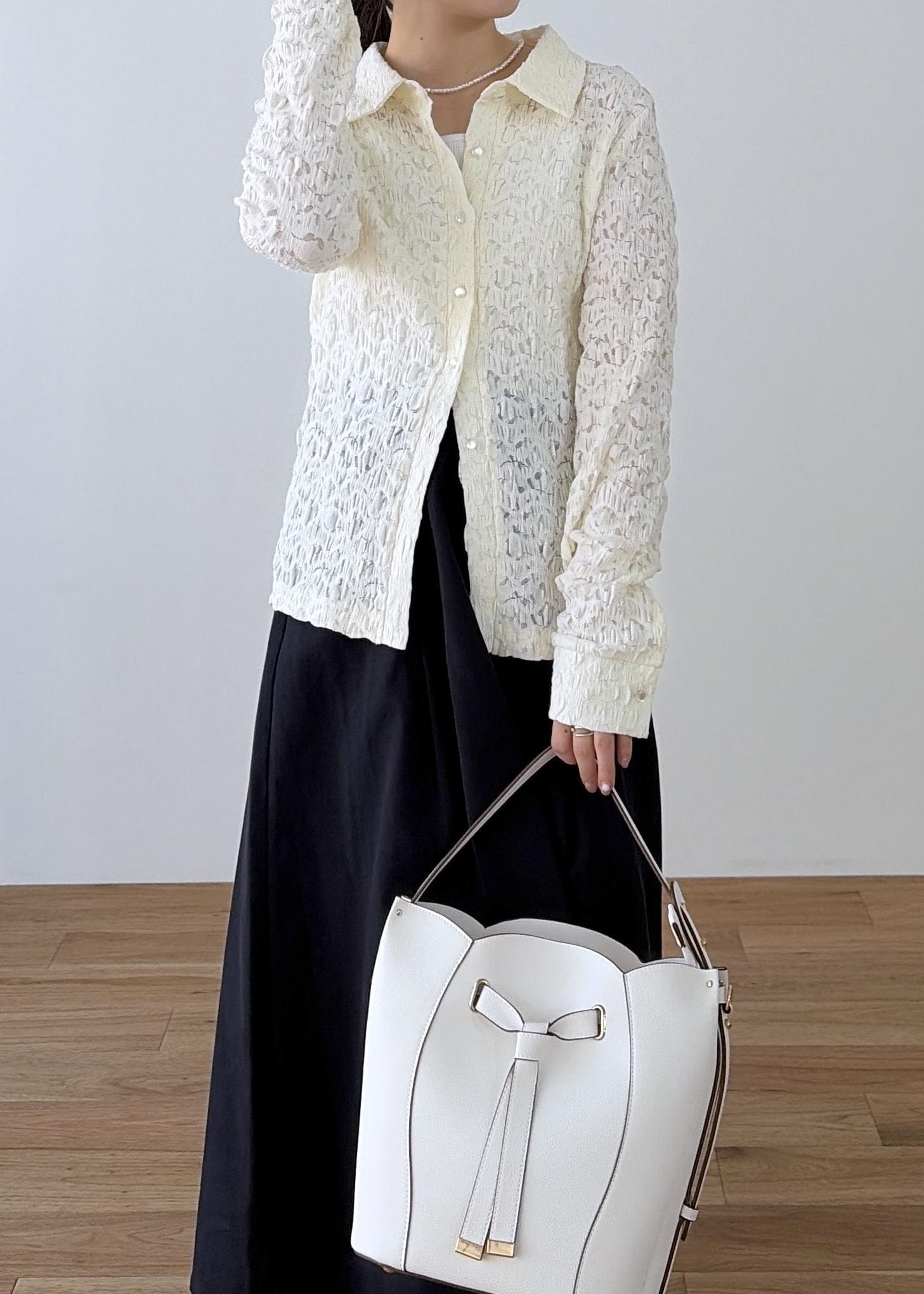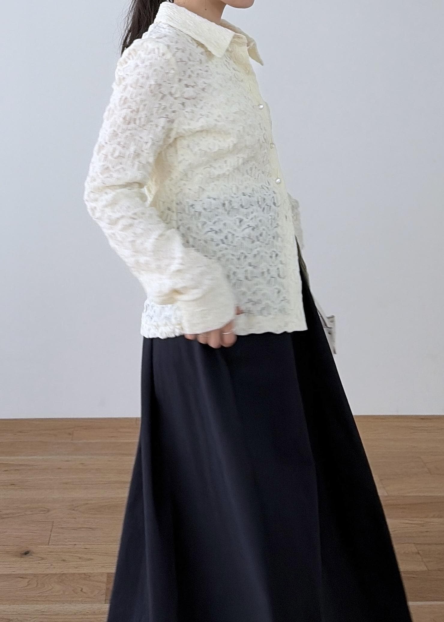 透け感があるので、今の時期はロンTなどを入れていただき、春先、暖かくなってきたらカップ付きのキャミソールを着ていただくのをおすすめします!!