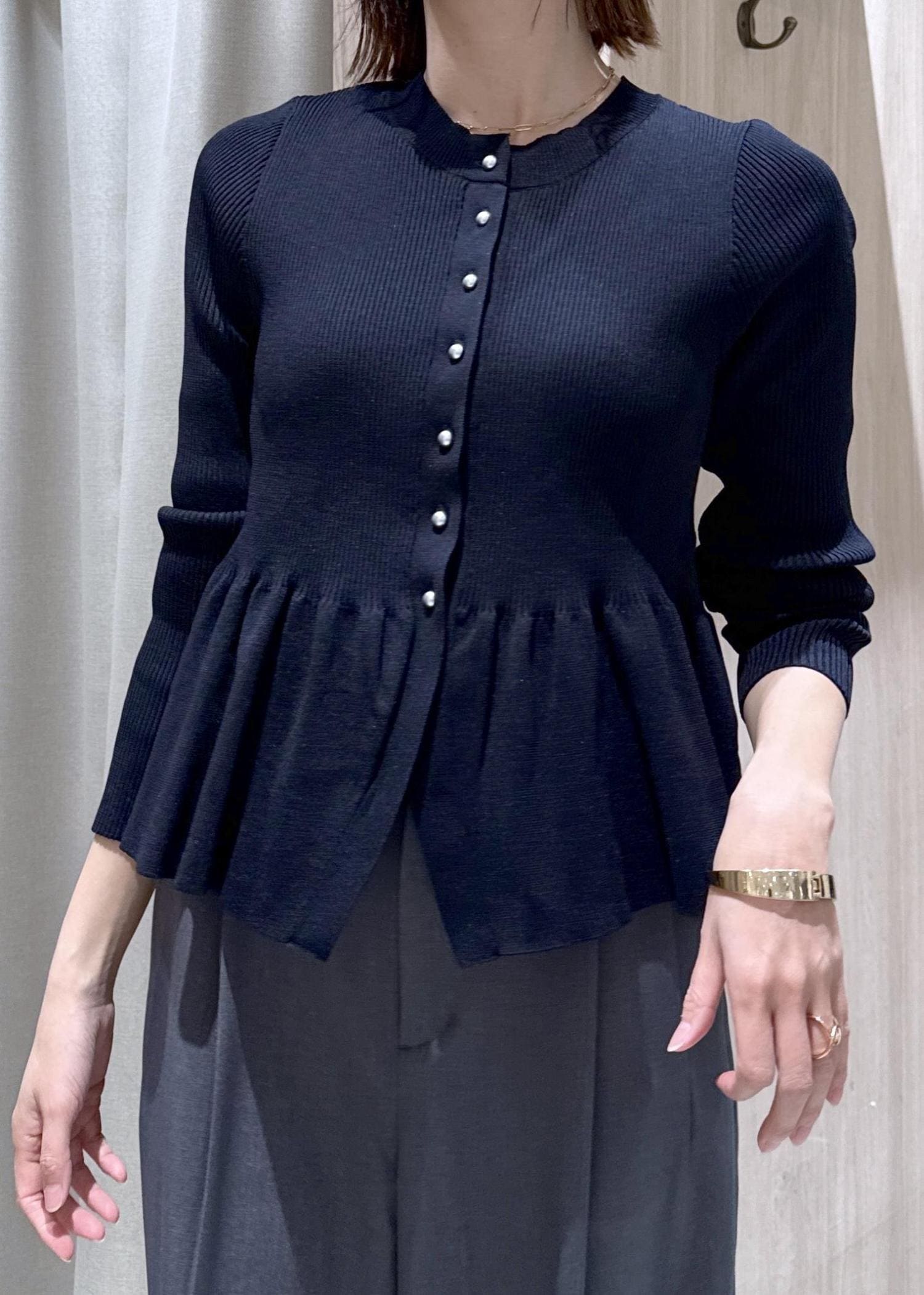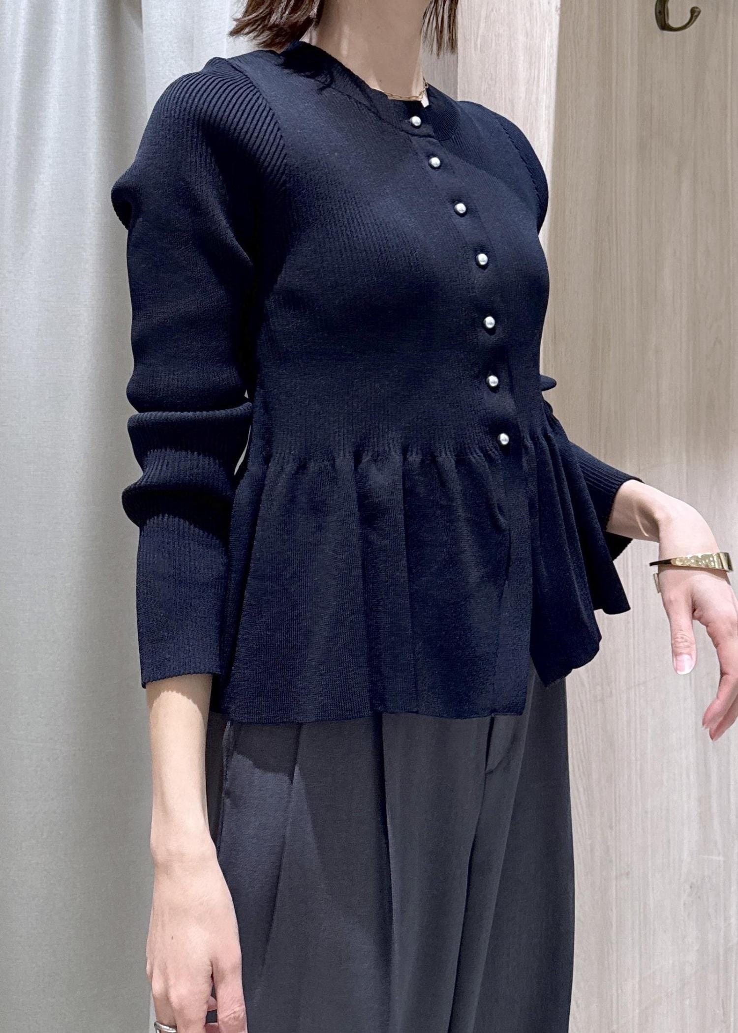 ペプラムシルエットがメリハリ良く見せてくれるトップスです。
