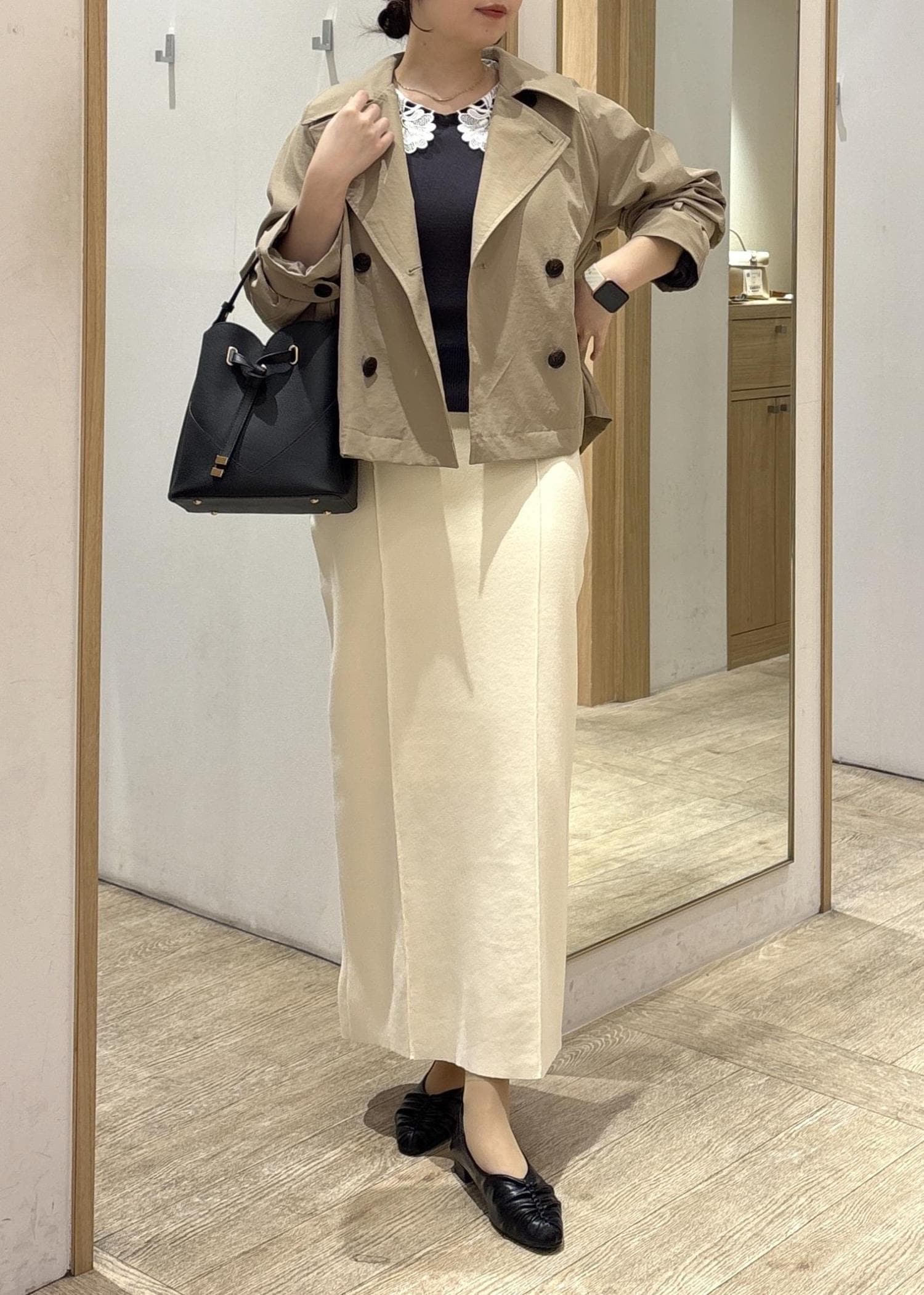 予約VISショートトレンチコート/UVケア・撥水・花粉ガードベージュ系 / F¥13,090レビューコンパクトなショート丈は、骨ストさんが得意とする縦ラインを活かしやすく、ボトムを選ばずすっきりとしたコーディネートに仕上がります。