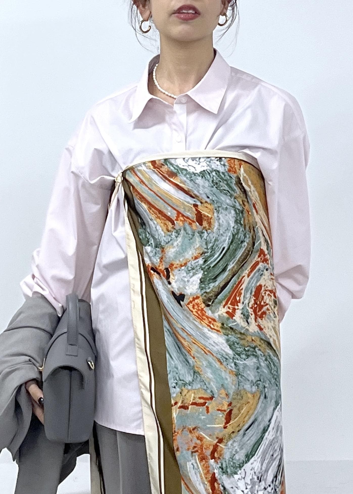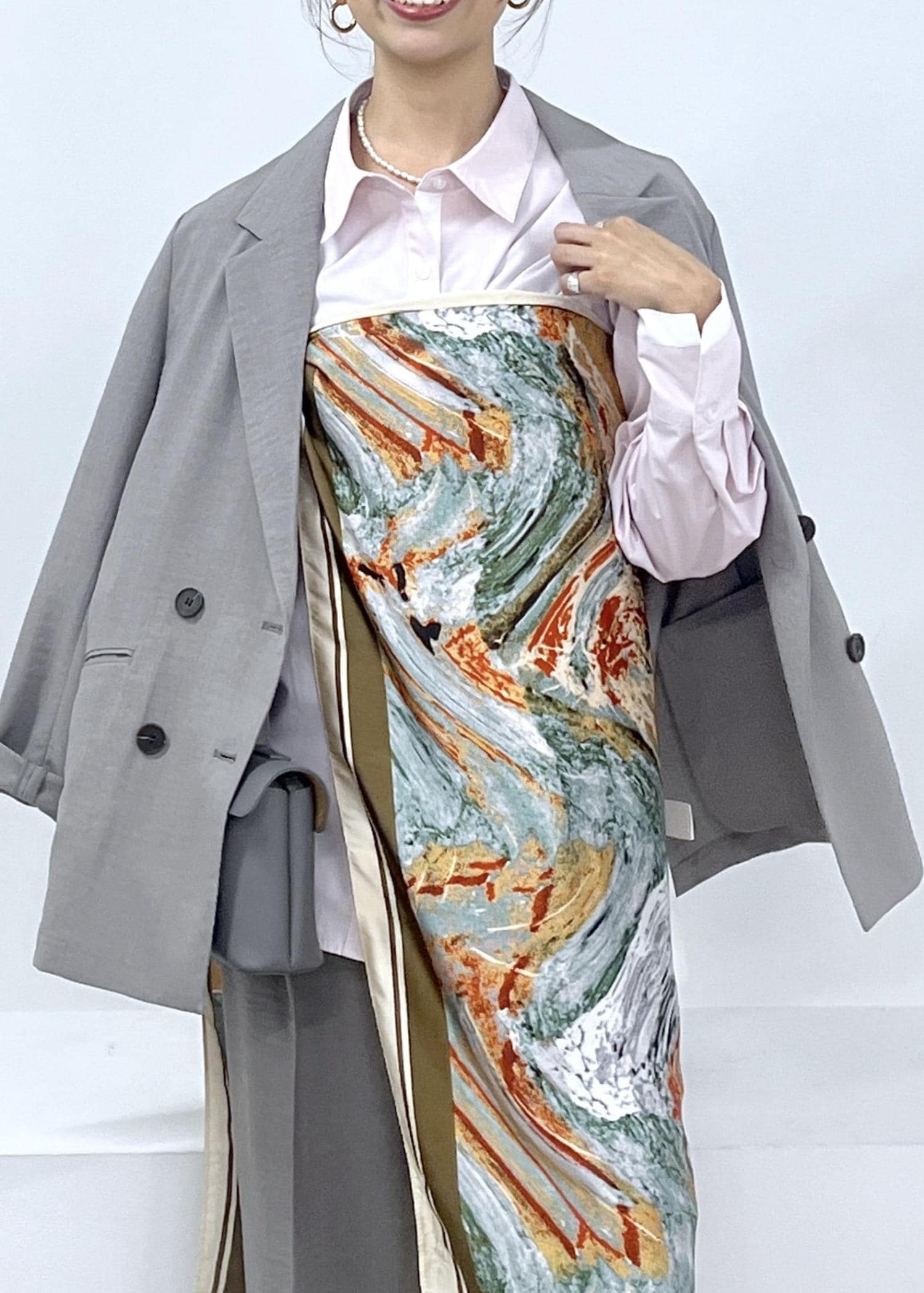 スカーフも一枚の洋服として、主役にしたスタイリング。