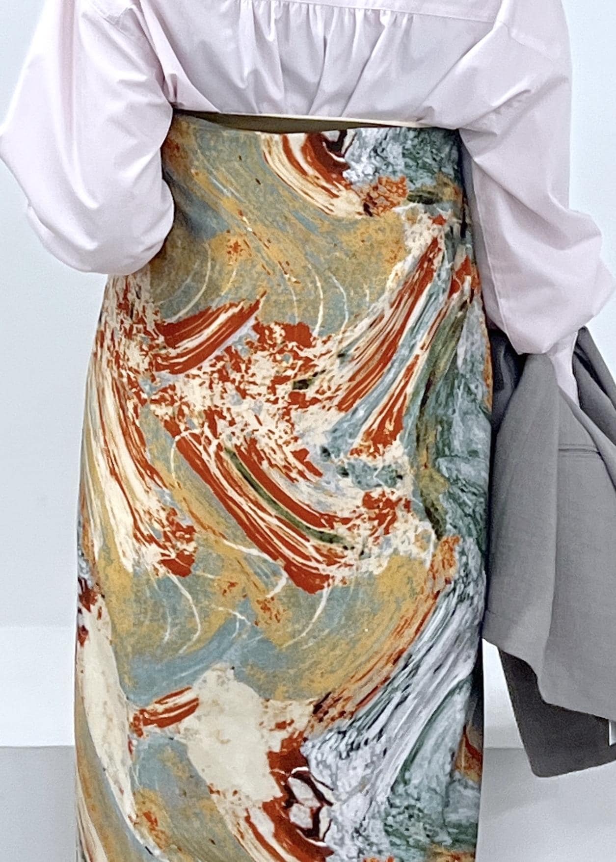 カラフルでありながら落ち着いたトーンのニュアンス柄で、コーディネートを選ばず使いやすい!