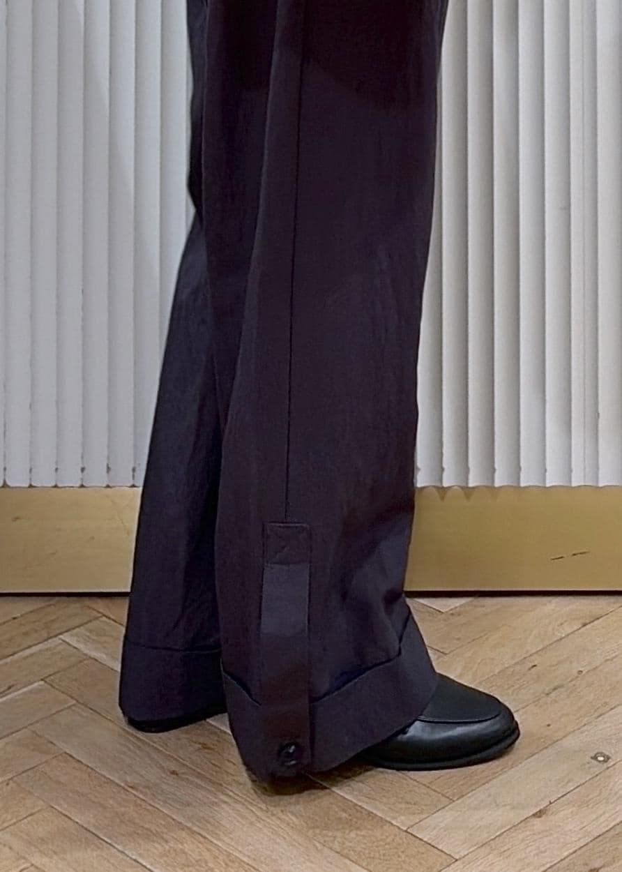 裾のロールアップデザインがかわいい春を感じれるストレートワイドパンツ。 -