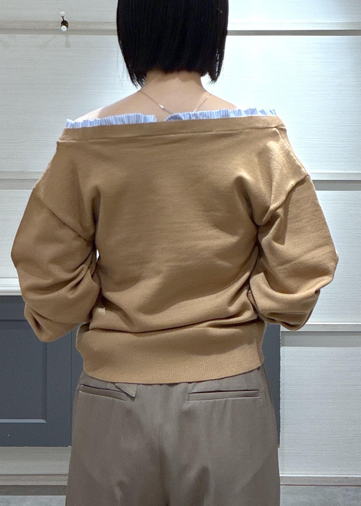 VISフリルドッキングニットプルオーバーブラウン系 / F¥5,489レビュー骨格ストレートで肩周りが気になる体型ですが全体的にゆったりとしており肩周りをカバーしてくれて、楽に着用できるので嬉しいです♡