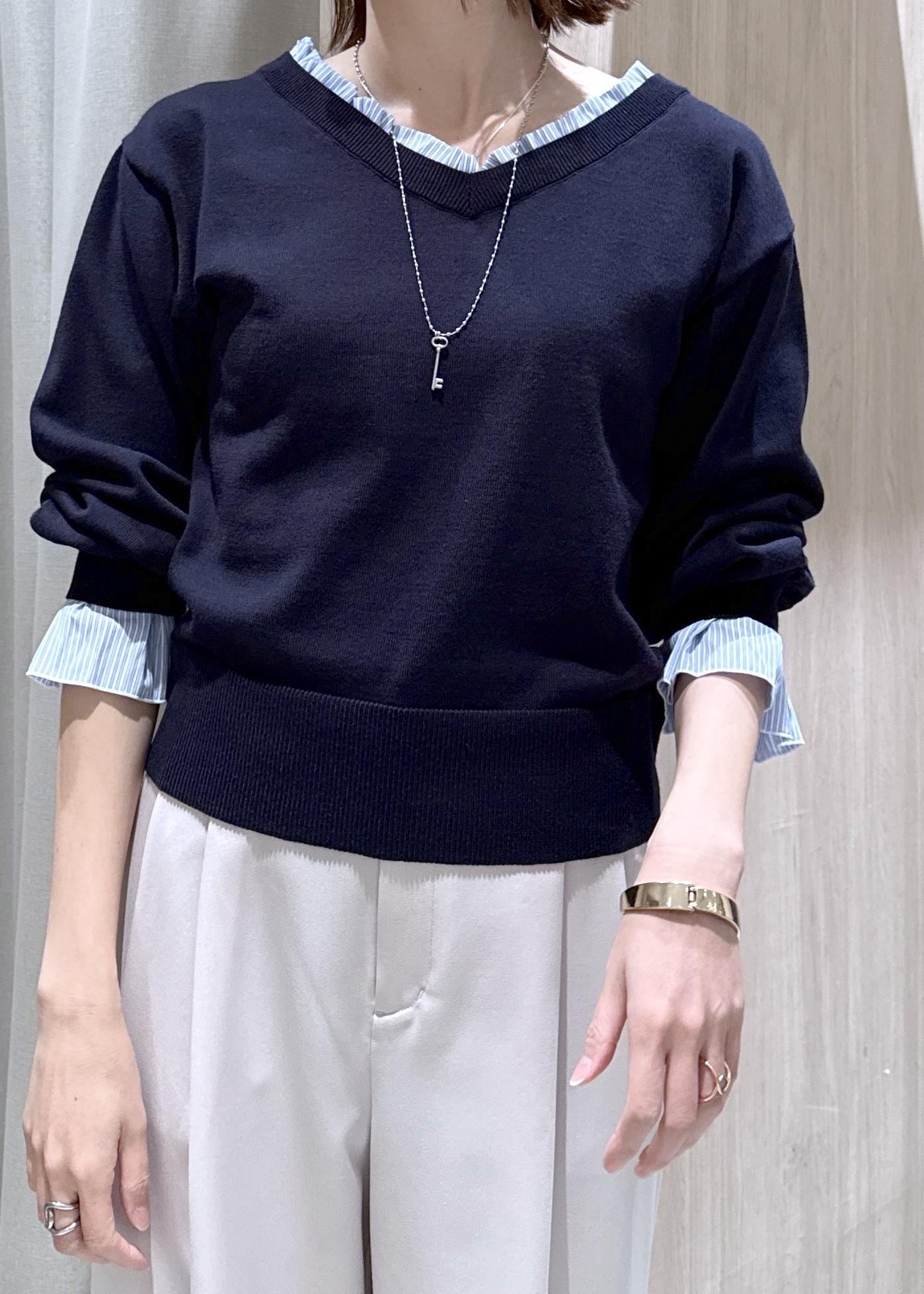 VISフリルドッキングニットプルオーバーネイビー / F¥5,489レビュー身長166センチで腰下のコンパクトな長さでした。