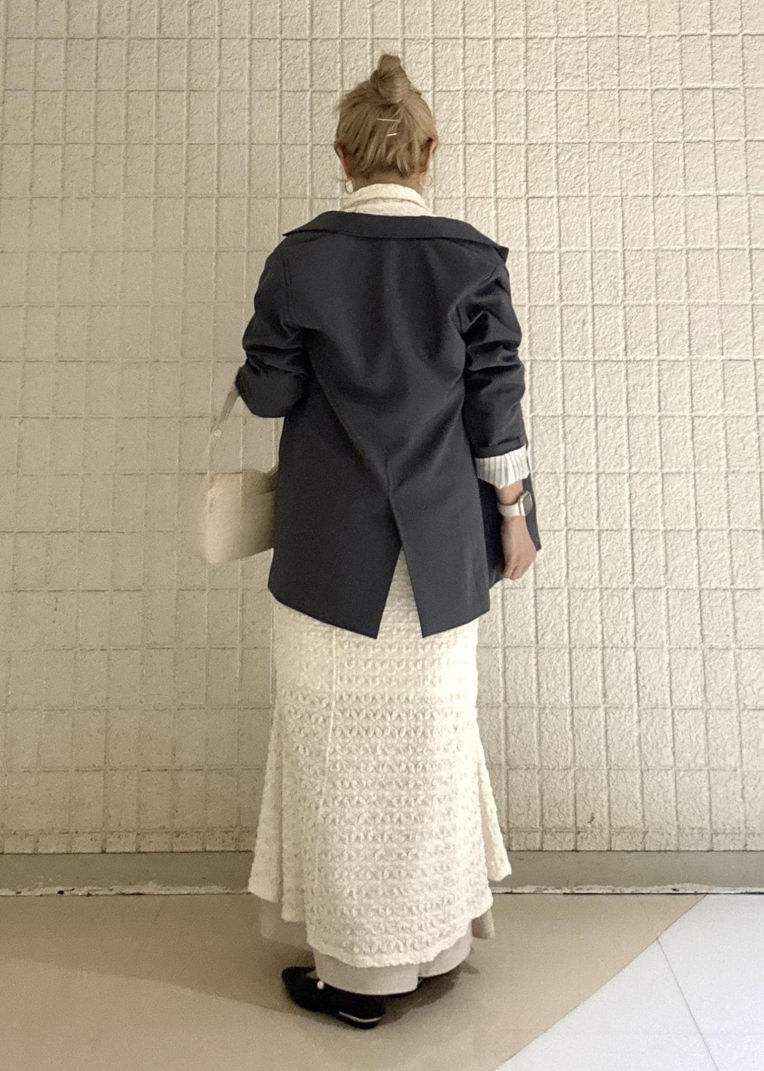 デニム合わせなどでカジュアルに着たい時はMサイズでゆるっと羽織るのもオススメです。 -