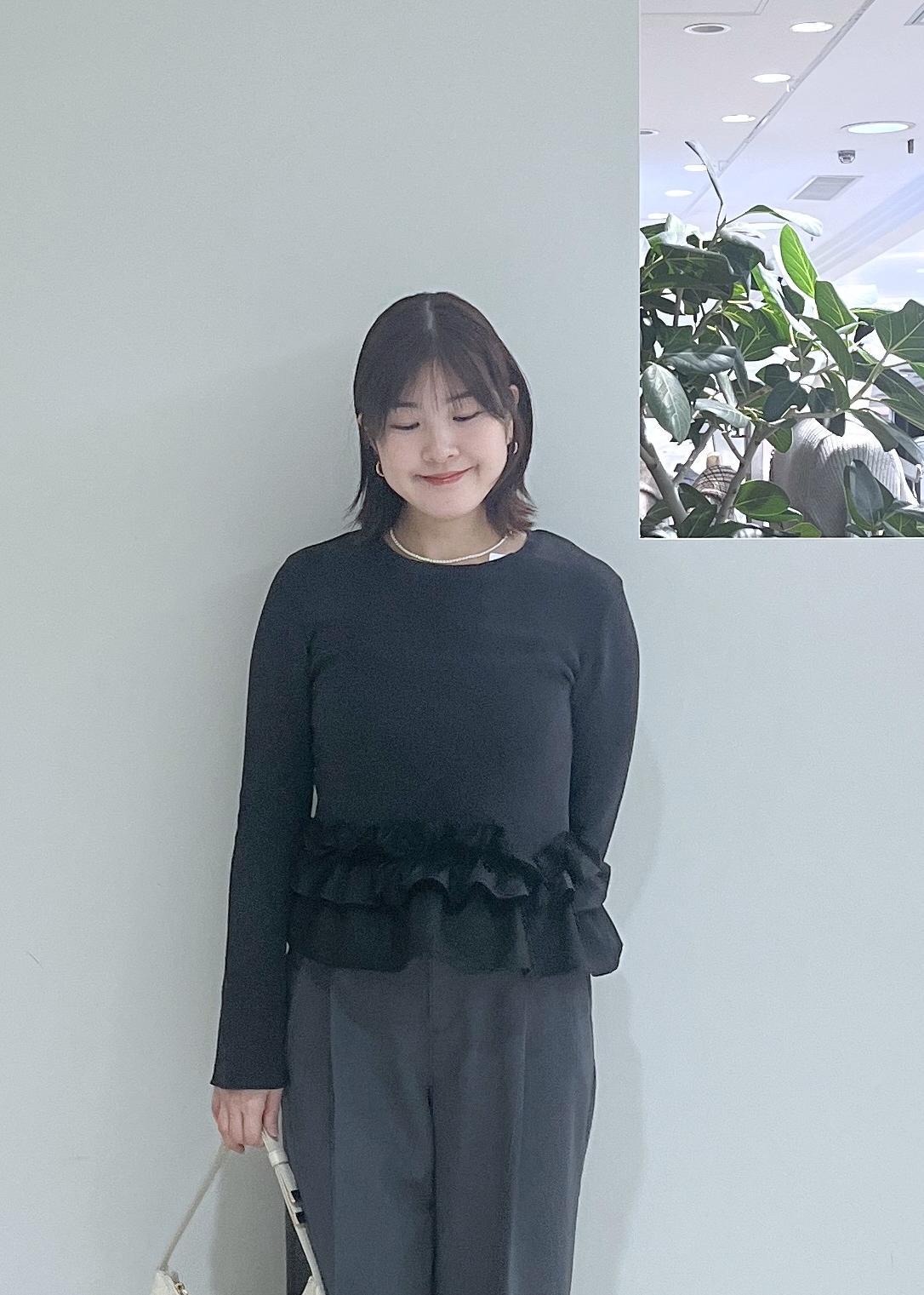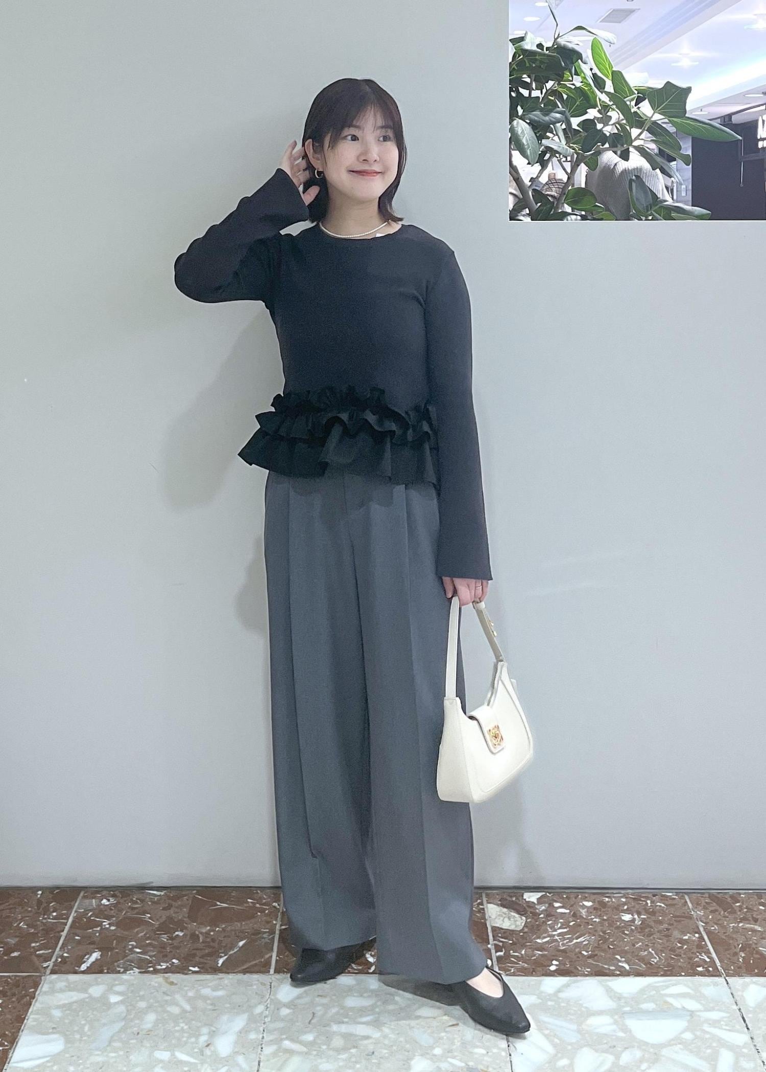 裾のフリルがアクセントなので体に沿ったシルエットですがスタイルアップ効果もあります。 -