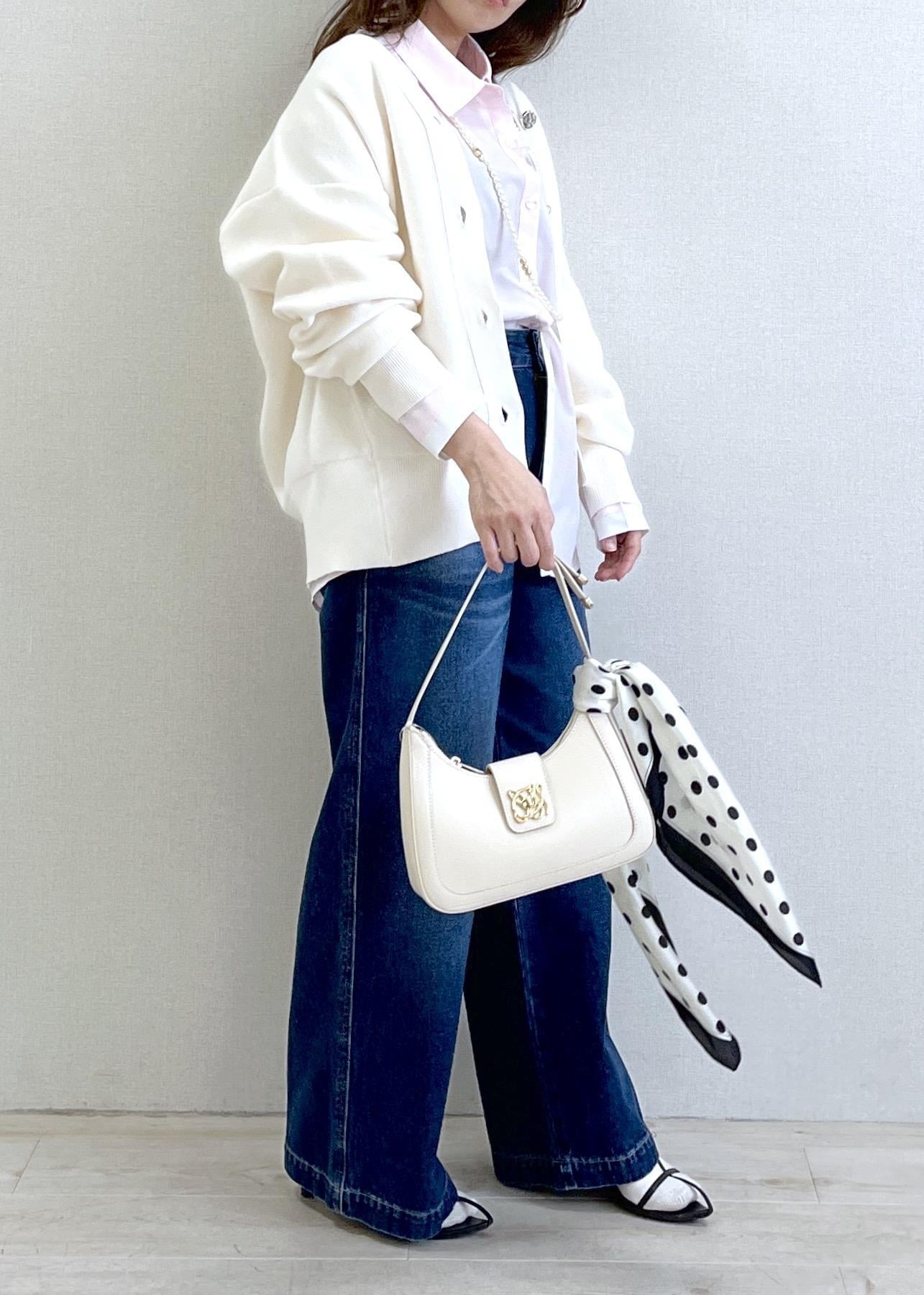 VISドット柄スカーフ 70×70cmホワイト系 / F¥2,189レビューコンパクトサイズのスカーフなので、首周りを華やかにしてくれスタイリングのアクセントにもピッタリです。何枚あっても困らないアイテムです。