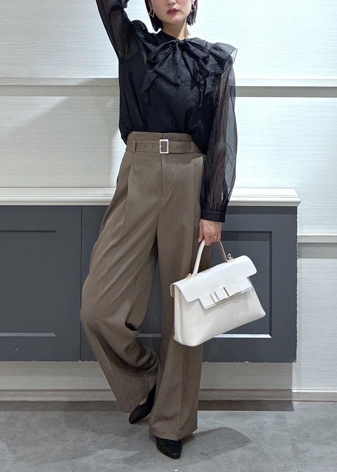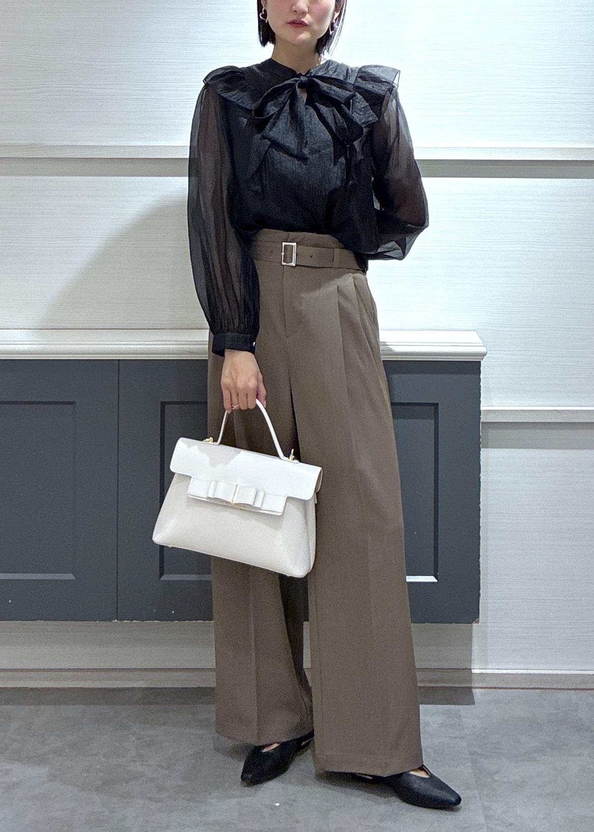 フリルブラウス×ベルトワイドパンツ