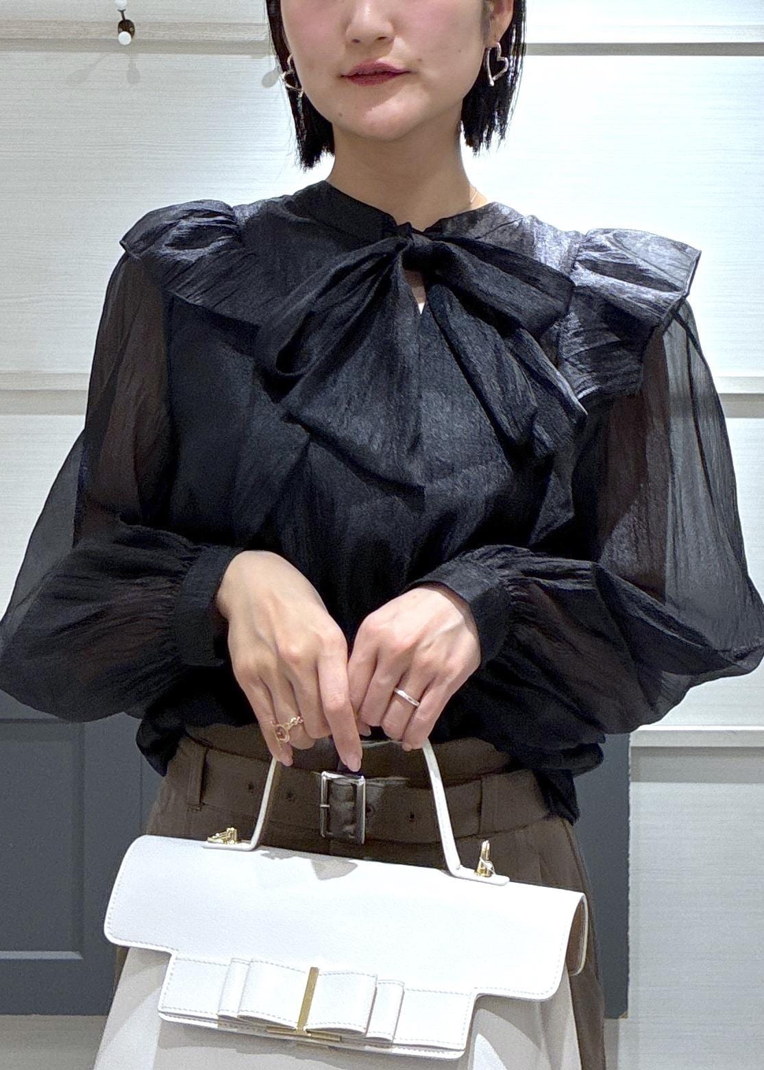 NEW!VISシャイニーボウタイ長袖ブラウス/イージーケア・2WAYブラック / F¥5,929レビュー骨格ストレートなので肩周りが気になる体系ですが、肩のフリルが腕をほっそり見せてくれたので嬉しいです♩
