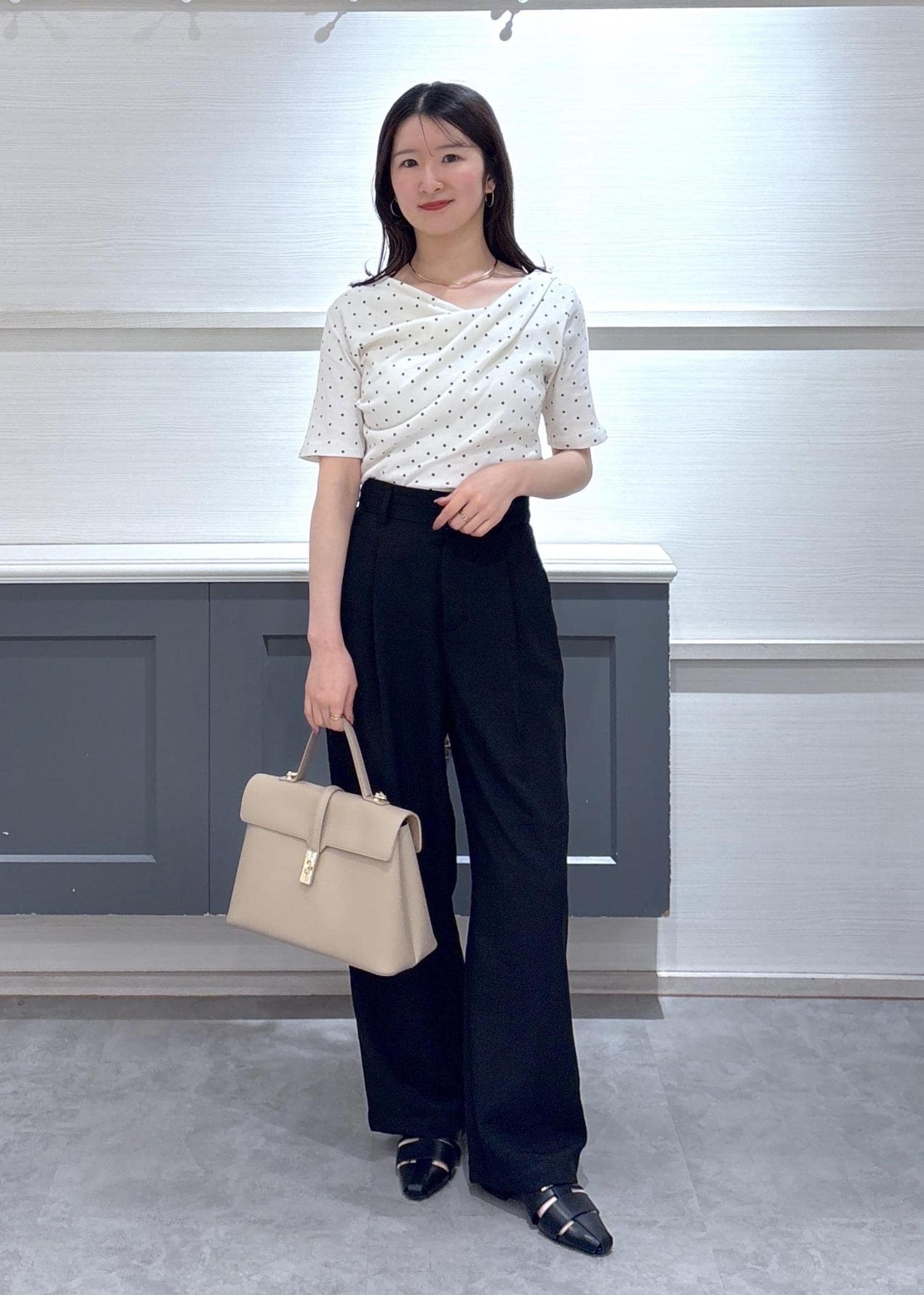 お客様から「フリルブラウスを着たいけど可愛くなりすぎるかな…」という質問があったので、そちらの不安を解消したスタイリングです♡