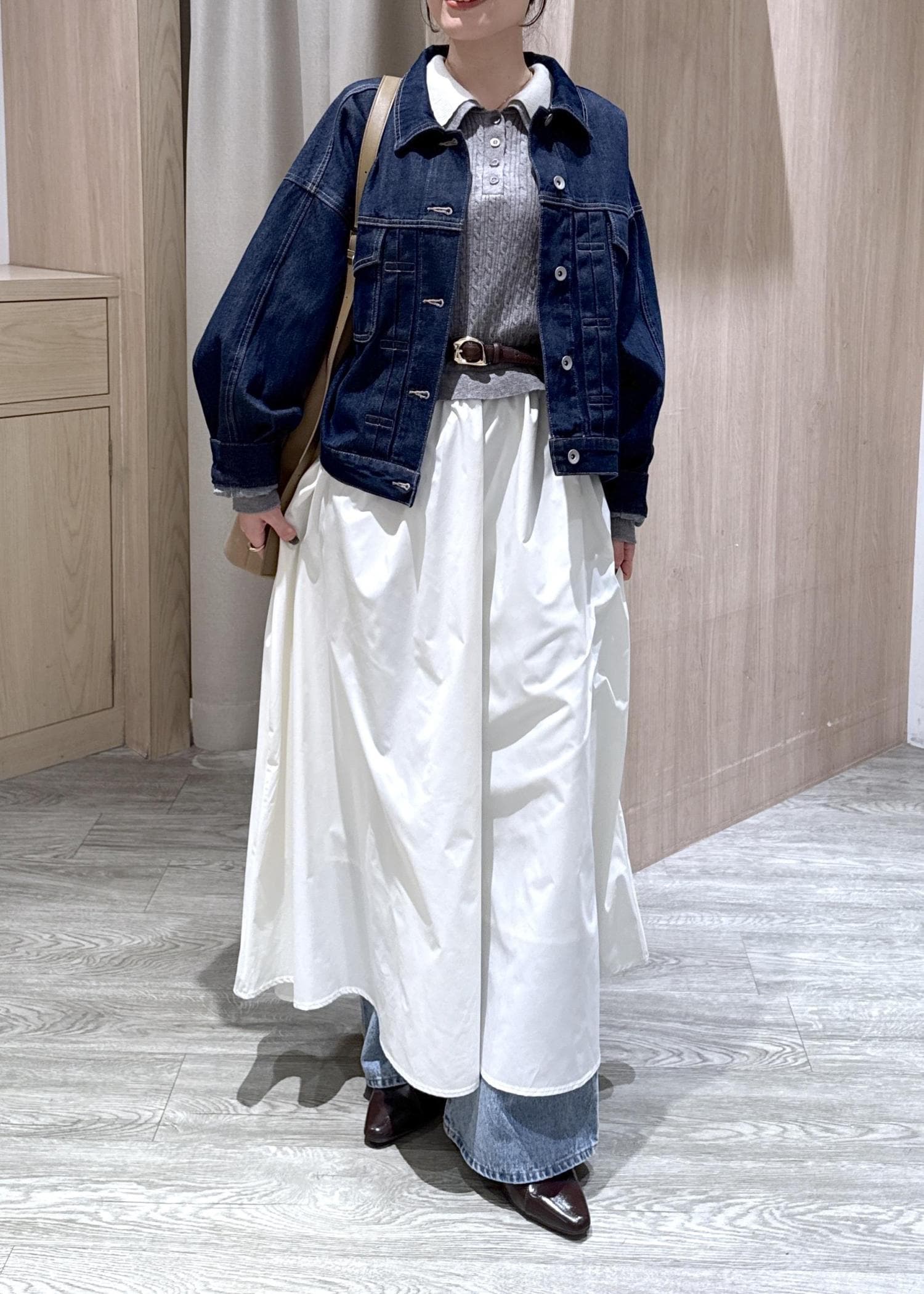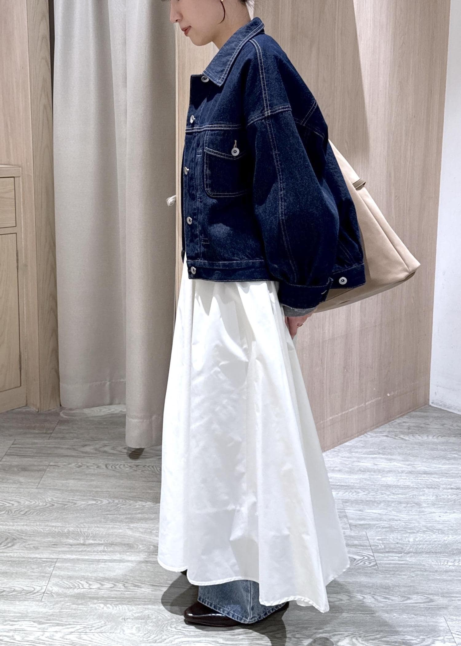 身幅もかなりゆったりしているので、中に分厚いニットやレイヤードをしても着膨れしないです!