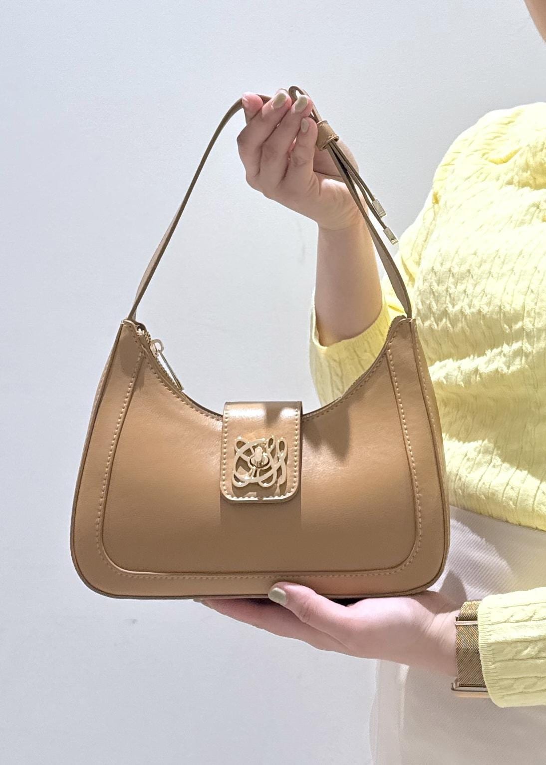 VIS【180℃美人見え】ハンドルリボンワンショルダーバッグ/新色追加キャメル / F¥5,929レビュー三日月型の形をしたVISのオリジナルロゴ入りバッグです。小さなバッグですが、中身が折り畳み財布、ハンドタオル、携帯、リップやファンデーションの必要最低限の物が意外と入ります!コンパクトで綺麗めなデザインなので、私は結婚式などのパーティードレスの際に合わせて普段ブラックを使っています。