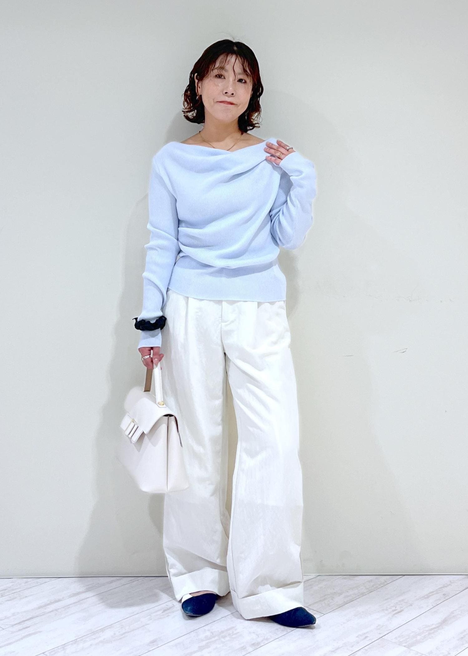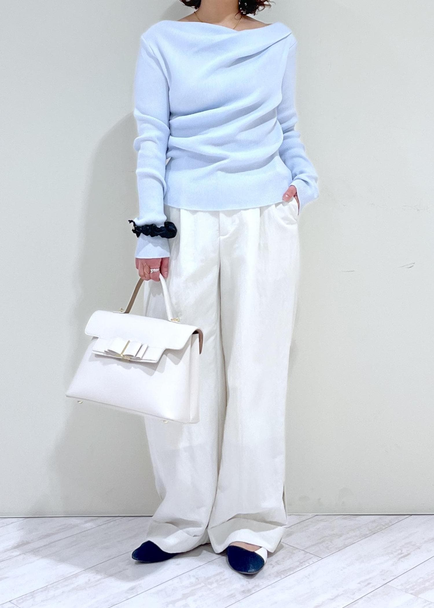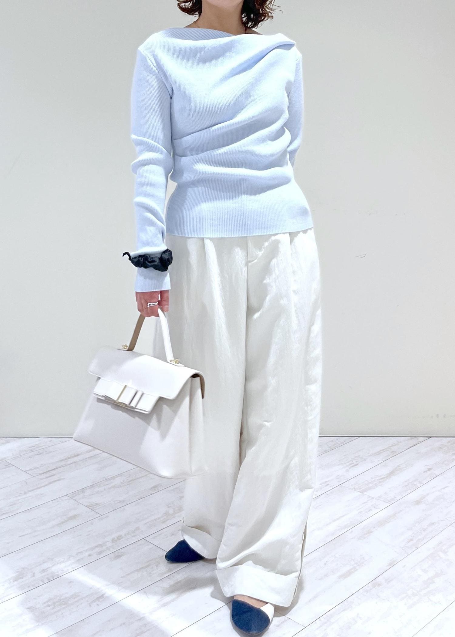 VIS【美得】ドレープオフショルダーリブニット/イージーケアサックス / F¥4,389レビュー大人気のドレープニットが春素材で新登場!