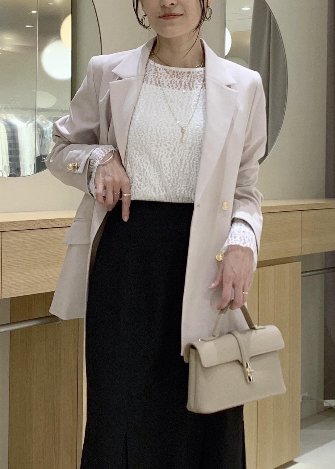 今の時期はジャケットやざっくりしたカーディガンの中に着て重ねると、袖口のデザインが見えて着映えしますよ♪