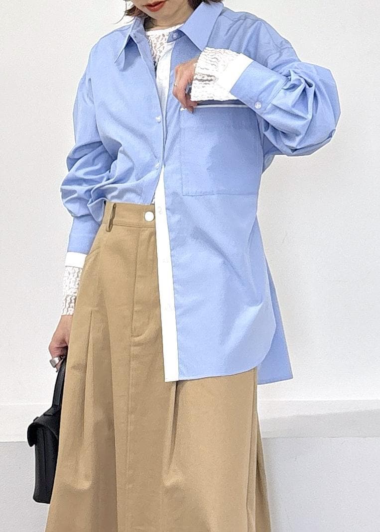 VISウエストリボンシャツ/イージーケア・WEB限定カラーブルー / F¥5,489レビューさりげないバイカラー配色が大人可愛いシャツ♪ボタン近く、袖口とちらっとアクセント◎チュニック丈のシャツに対し、後ろにはドロスト仕様となっていてスッキリ見えも叶う優秀シャツです。さらっとした着心地でとても着やすい◎全体的にゆったりめ、着丈はお尻が隠れる長さでした。