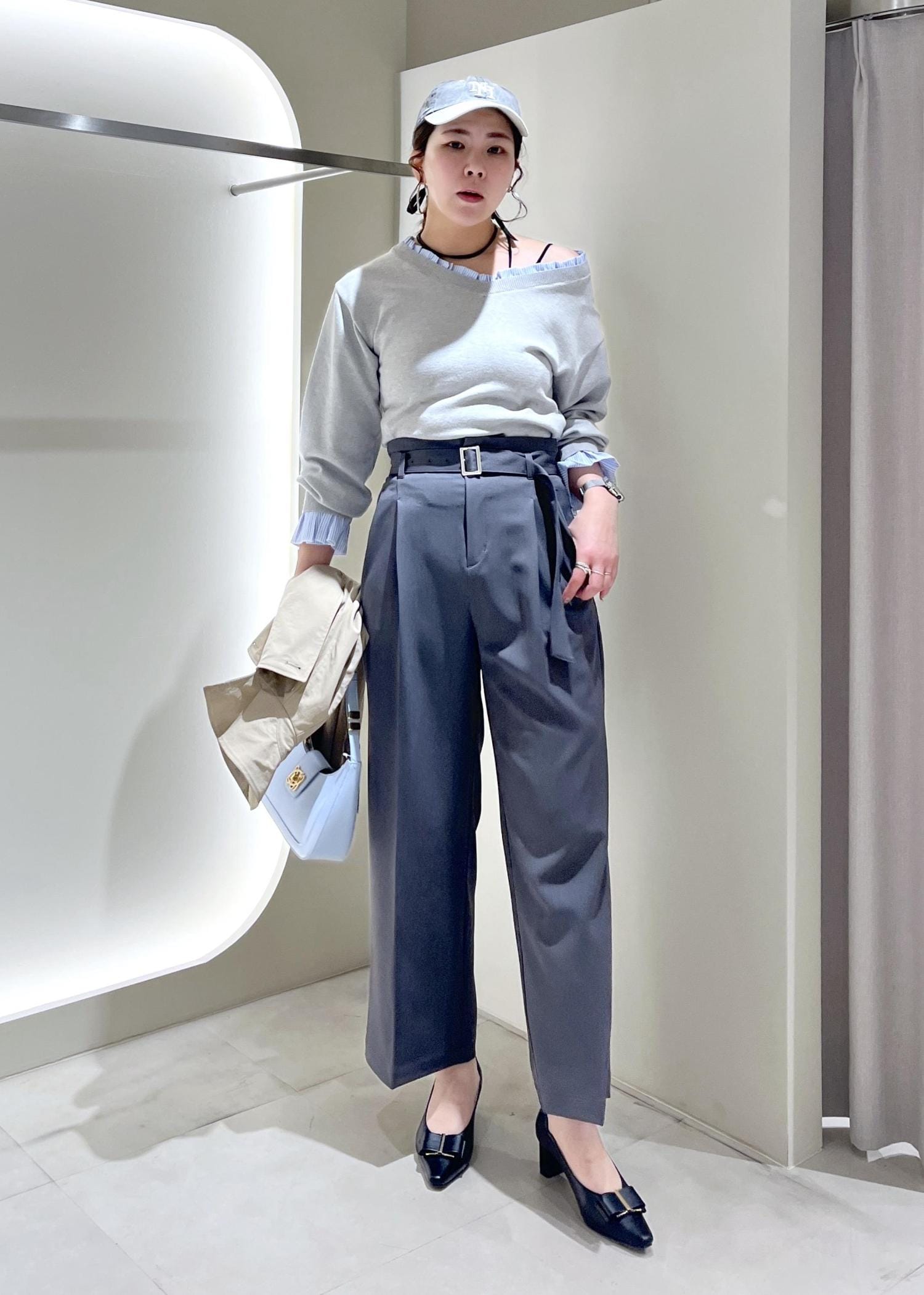 太めのベルトが腰位置を高く見せてくれてスッキリ見え◎171cm/Mサイズで足首の丈感で、個人的にはもう少し長さが欲しいところですが、抜け感もでてスッキリ見えするかなと思います。 -