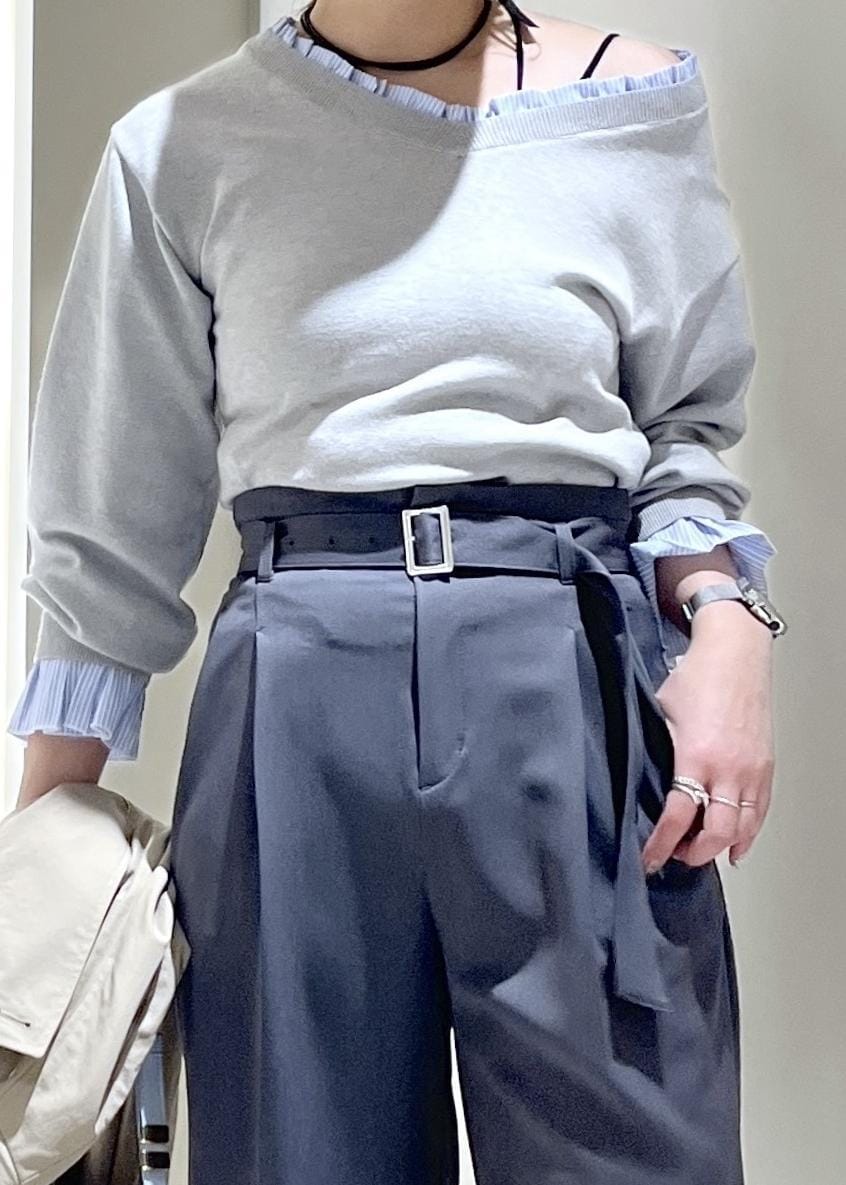 フリルドッキングがコーデを華やかにしてくれるのはもちろん、オフショルにもなるので雰囲気を変えたい時にも◎ -