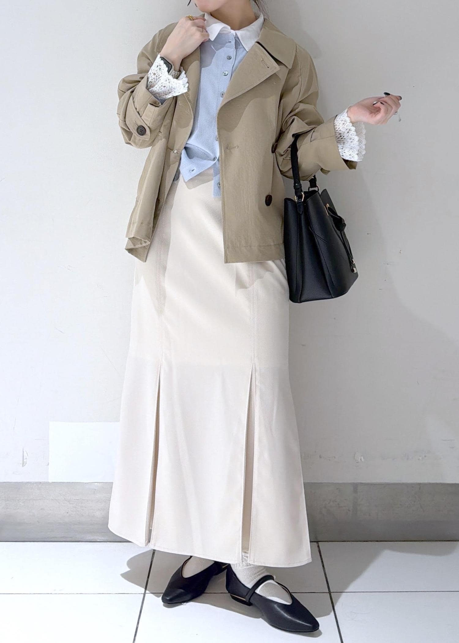 VISボックスプリーツマーメイドスカート/イージーケア・防シワベージュ / S¥6,589レビュー152cmでSサイズ着用です!