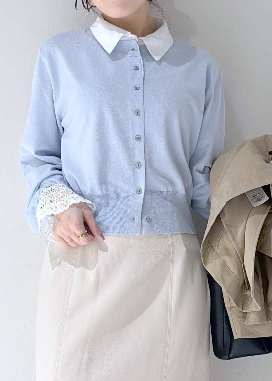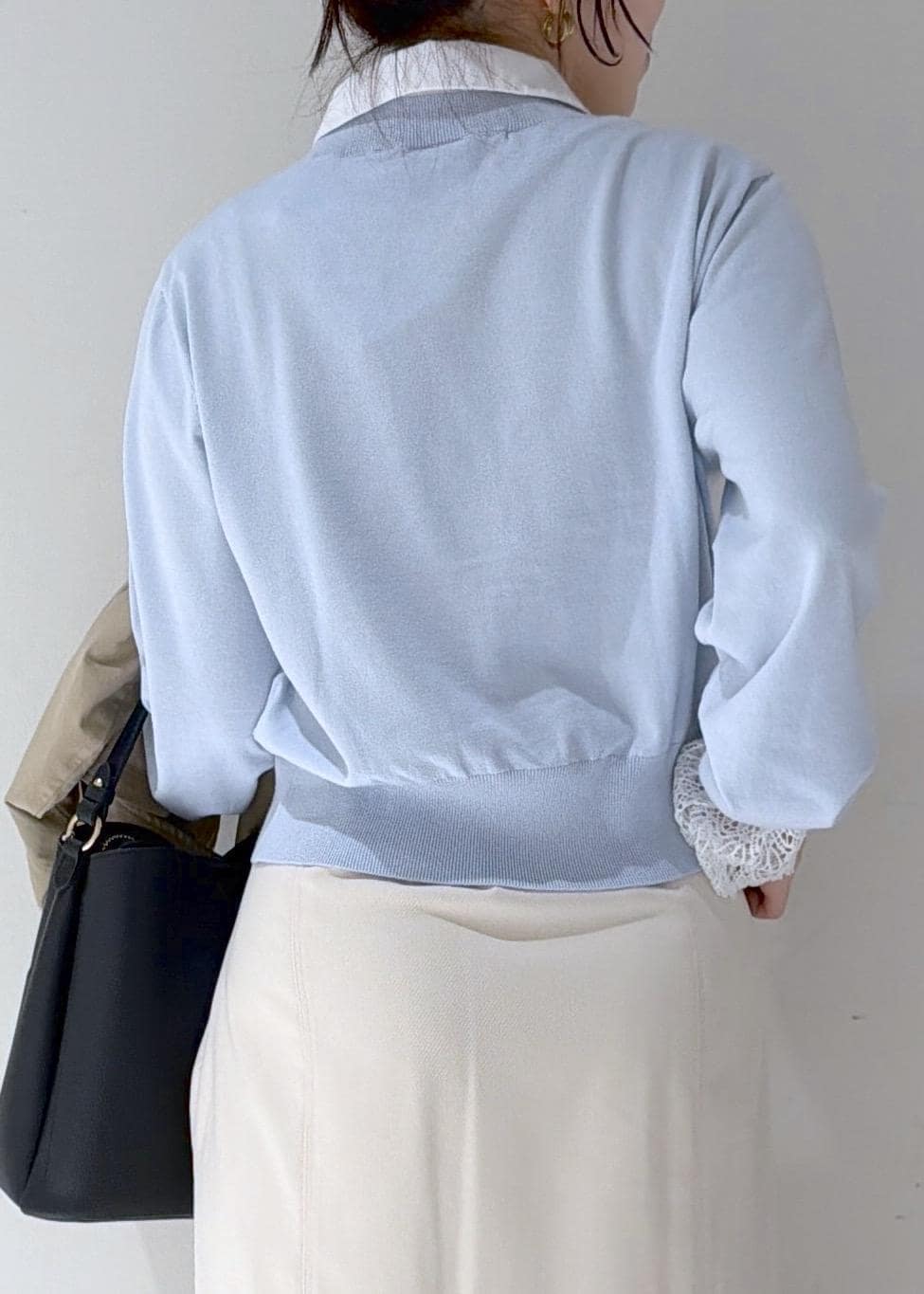 VISレースカフスドッキングニットカーディガンサックス / F¥6,589レビュー152cmで腰にかかるくらいのコンパクトな着丈のドッキングカーディガンです!1枚で着膨れもせずに、重ね着コーデが出来るのでおすすめです