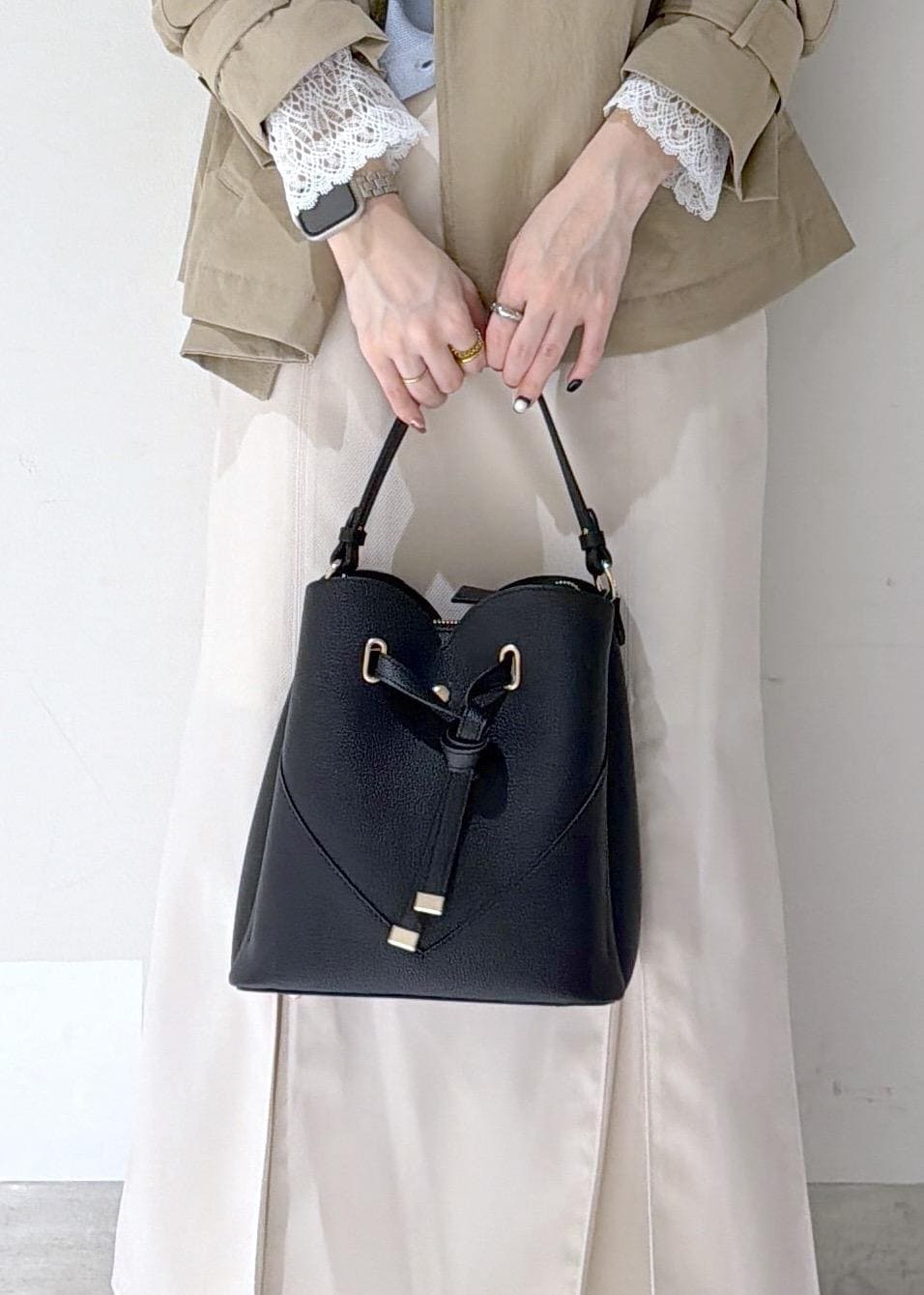 ブラックは、ハートがさり気なく分かるようになってるので、いろんなテイストのコーデにも使いやすいです◎金の金具が高見えします♪