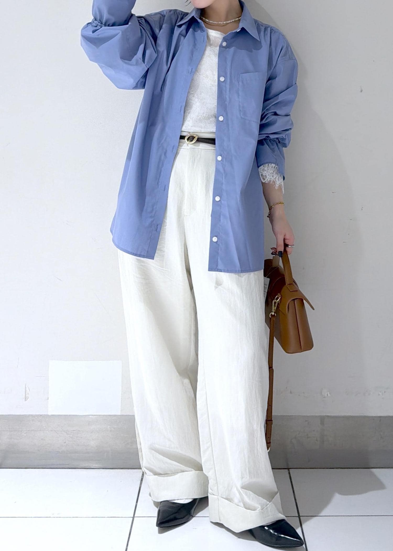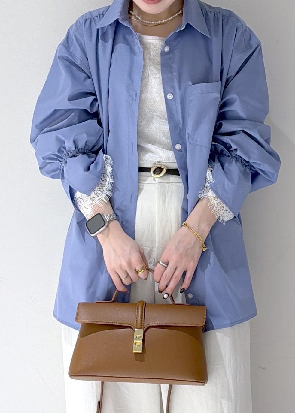 VISレーススリーブAラインシャツサックス / F¥5,929レビュー152cmでヒップがすっぽり隠れる着丈です!