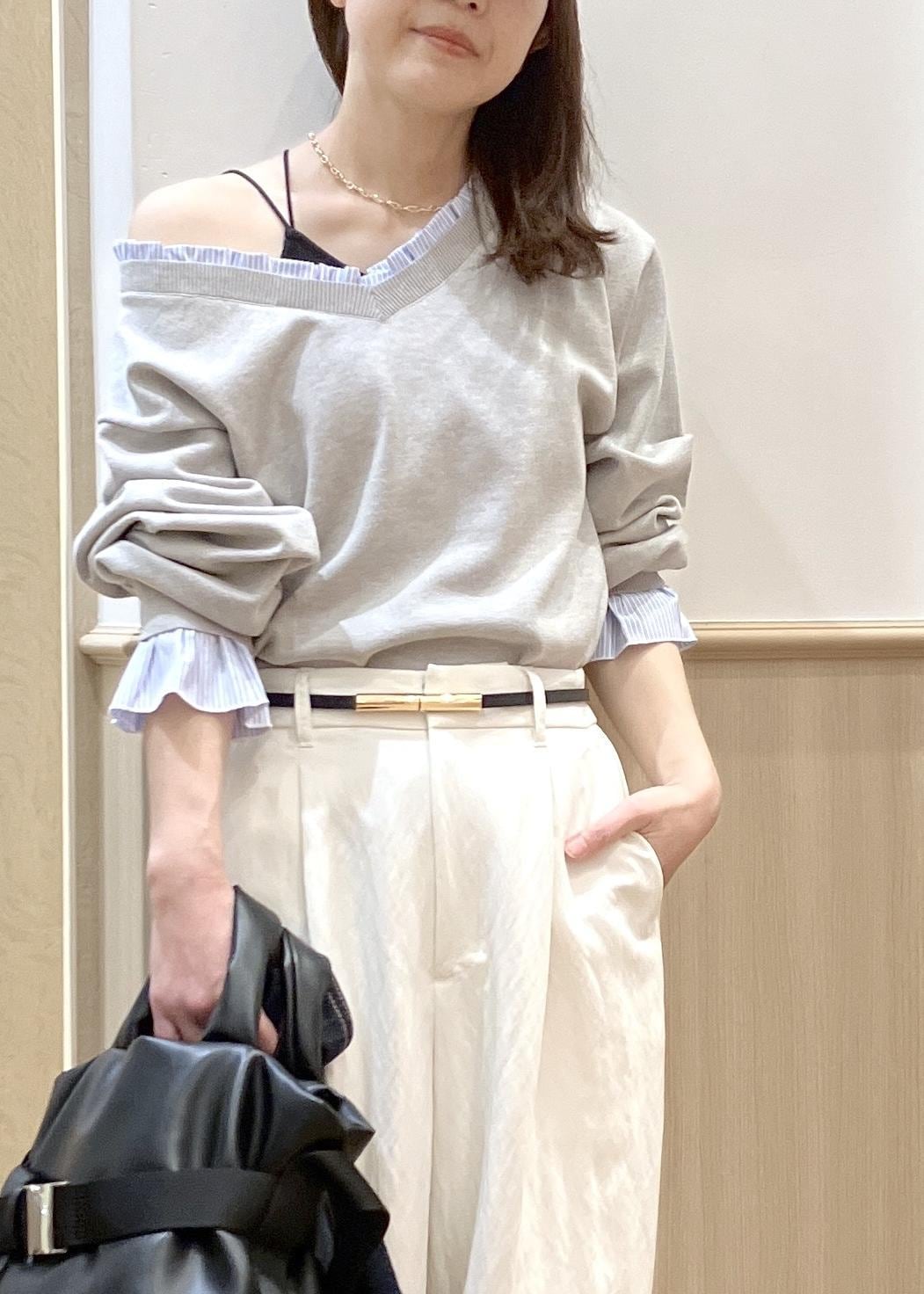 VISフリルドッキングニットプルオーバーライトグレー / F¥5,489レビューオフショルダーとしても楽しめる2wayトップス