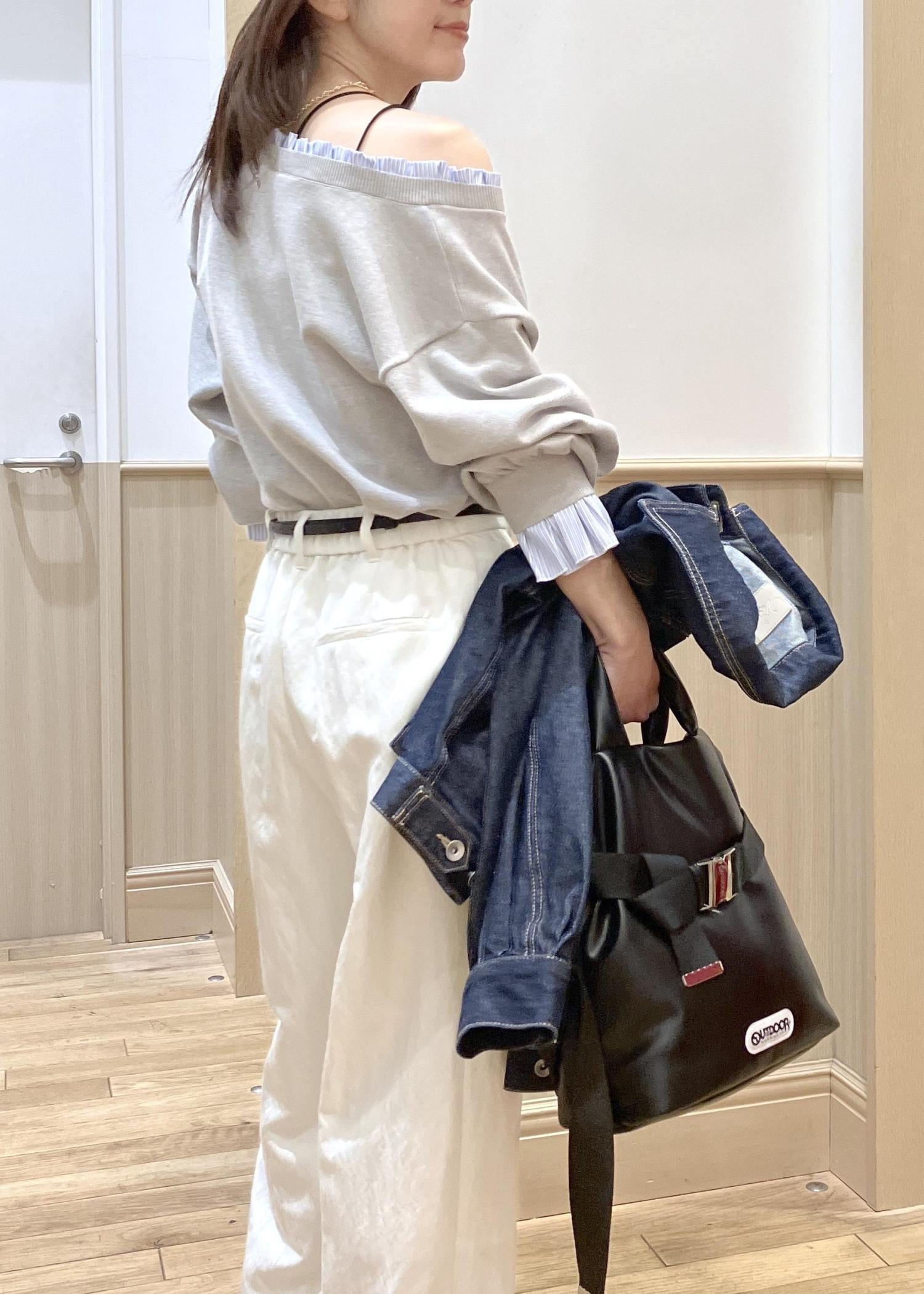 程良い肌見せができる着映えトップスをデニムのGジャン合わせでカジュアルに着てみました。